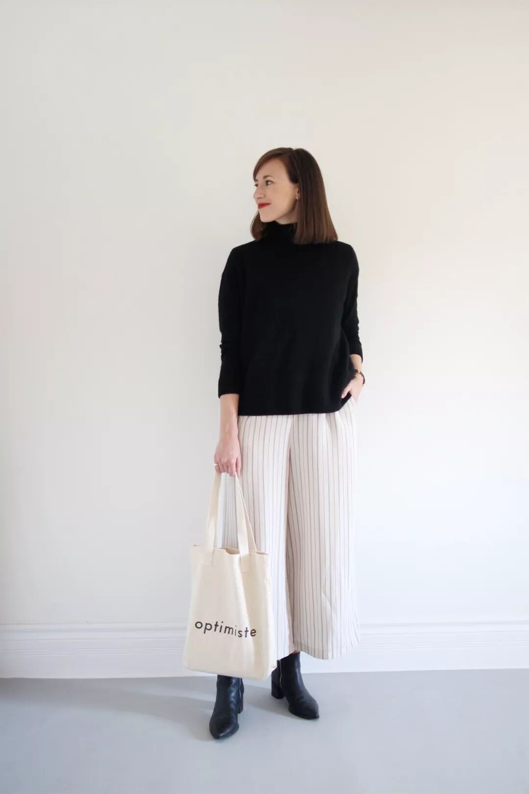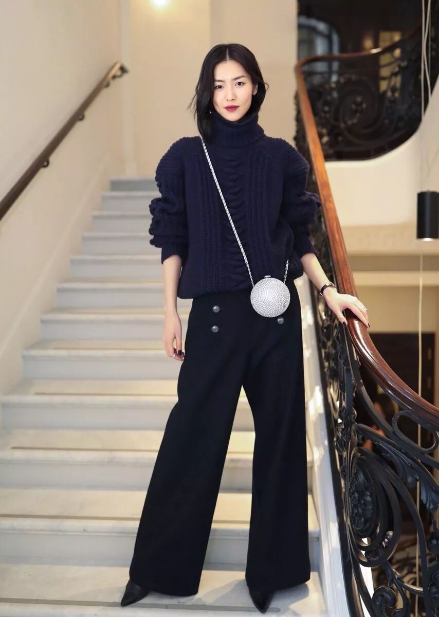 高領毛衣+闊腿褲=永不過時的氣質精,時髦顯氣場。