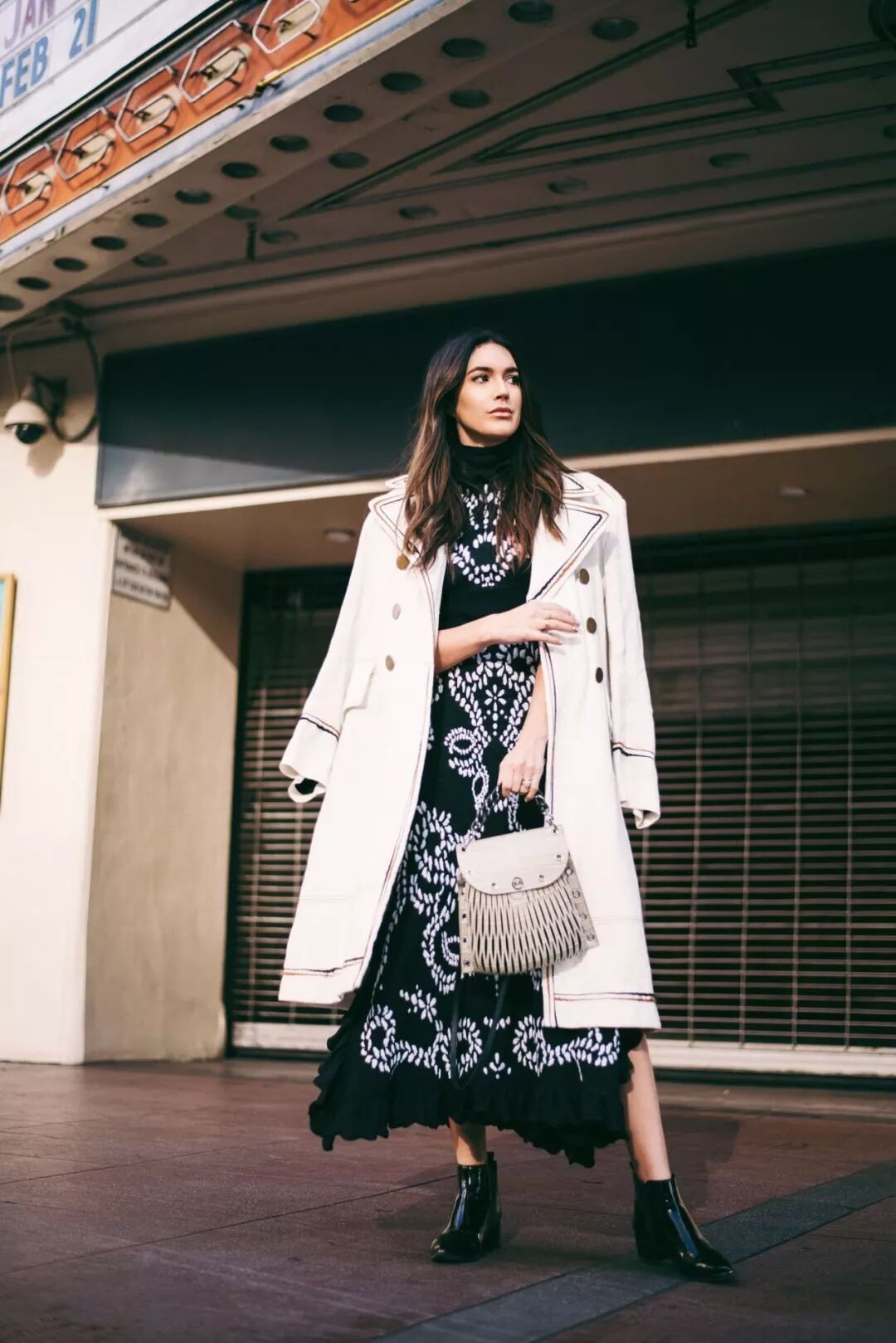 夏日里最受歡迎的雪紡裙、緞面裙,在秋冬也可以照穿不誤。用它們與厚重的高領毛衣玩混搭,能讓整身搭配變得更輕盈更浪漫。