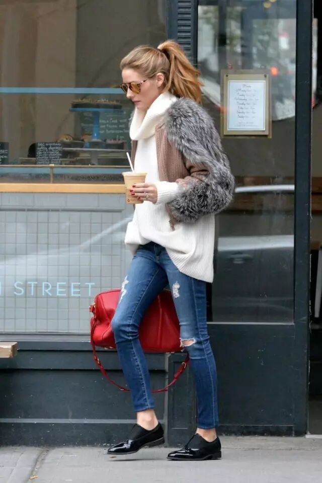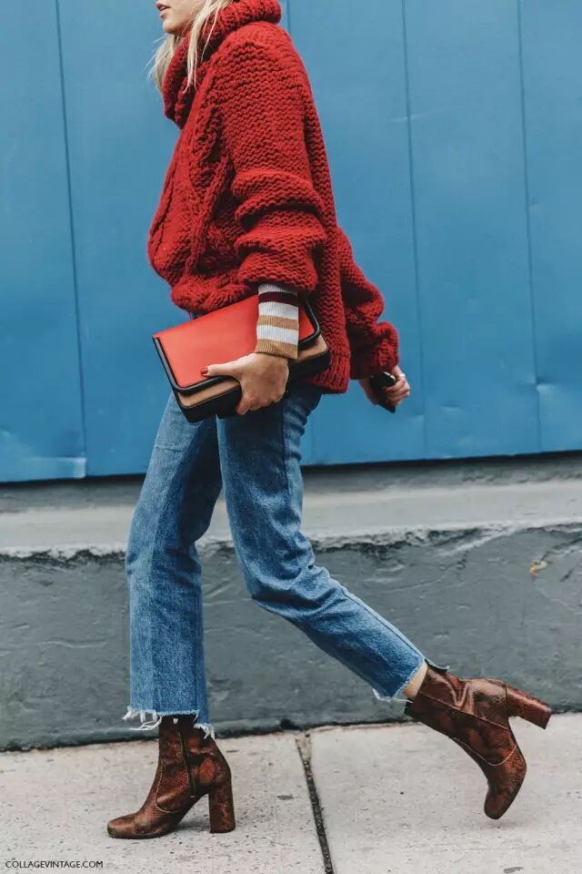 粗棒針的oversized毛衣則多了幾分復古腔調,又chic又有型,簡單搭配一條牛仔褲便能帥氣爆棚。