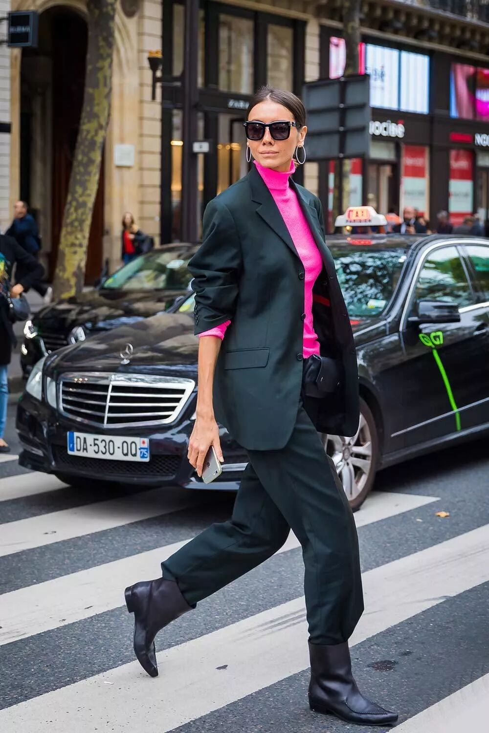 你可以西服成套穿搭配高領毛衣,無論通勤or日常出街,你都是走路帶風的氣場女王。