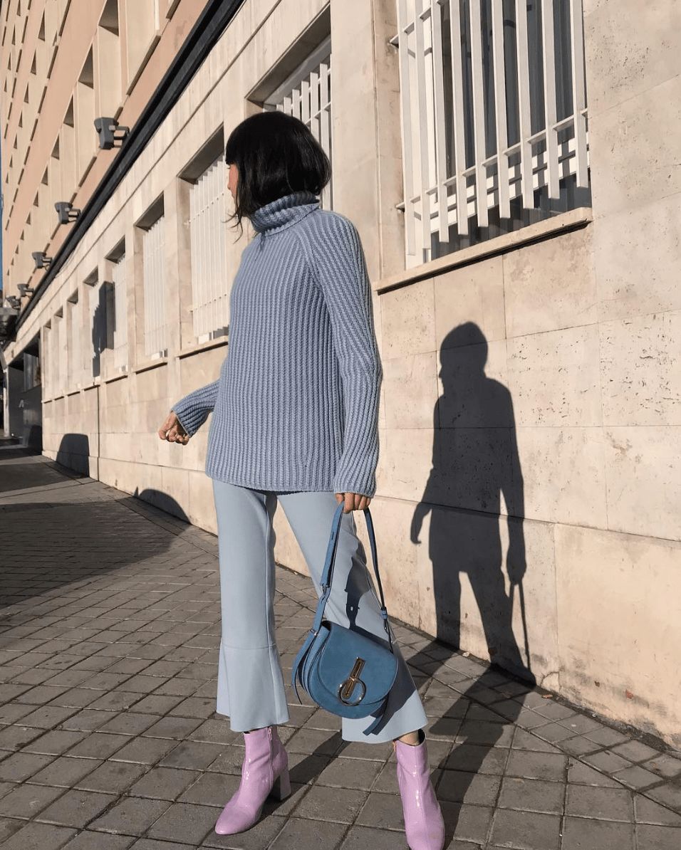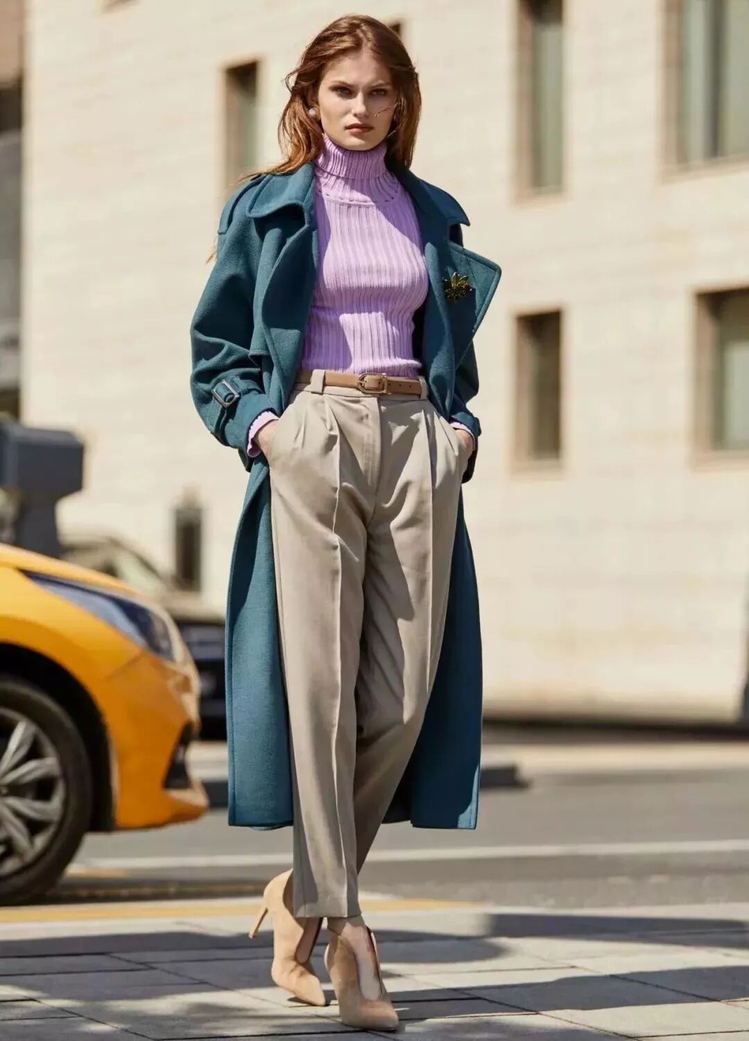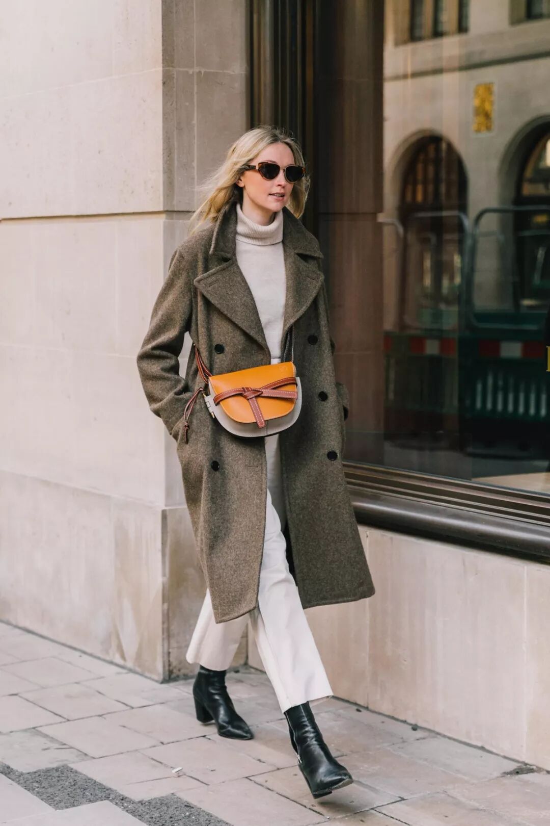 高領毛衣與你的大衣外套可以選擇同色系,會讓你的造型更具整體感。