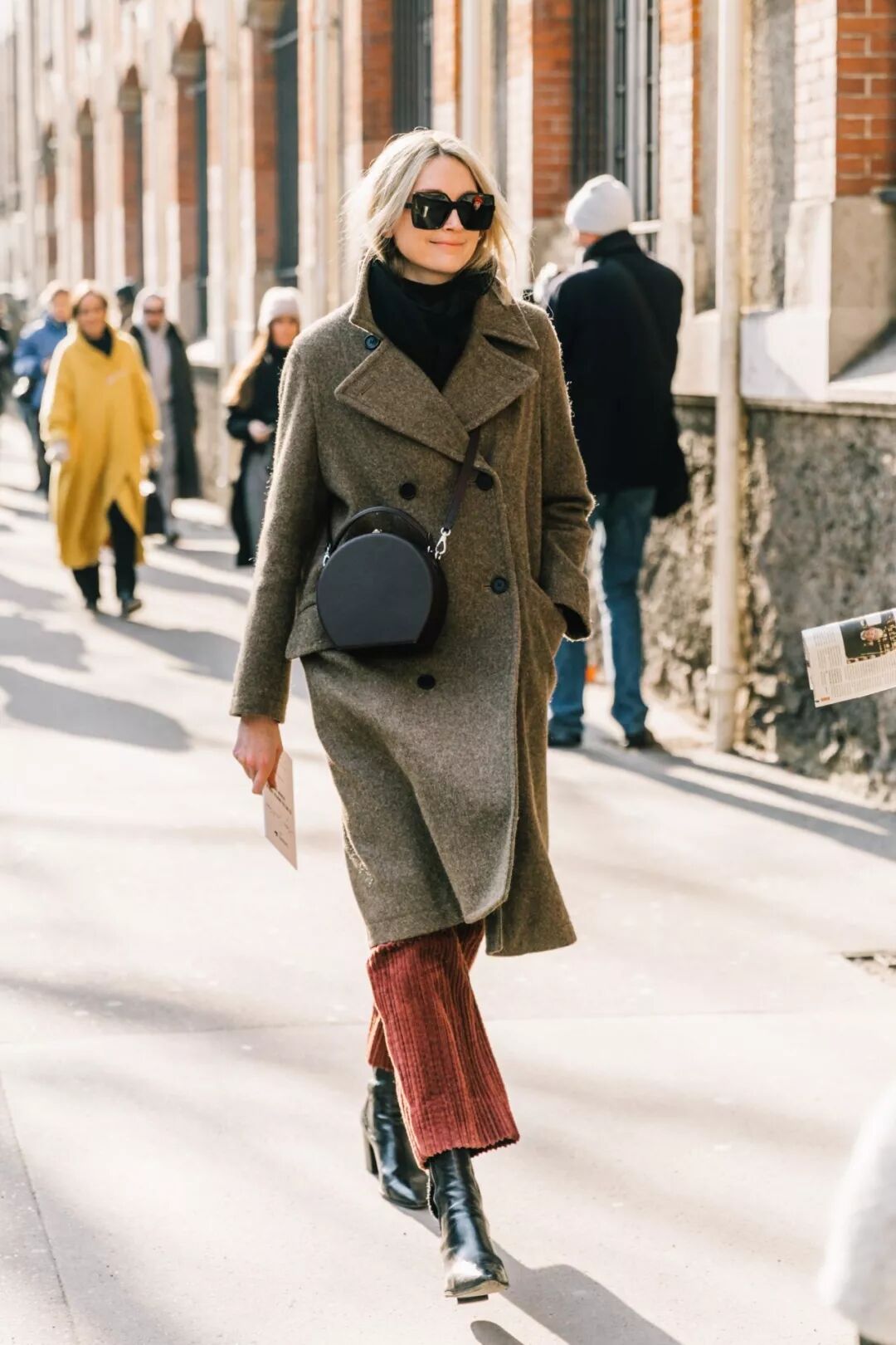 長款呢大衣與高領毛衣無疑是冬日的標配,保暖與時髦度皆滿分,下半身無論搭配褲裝or裙裝都可以很出眾。