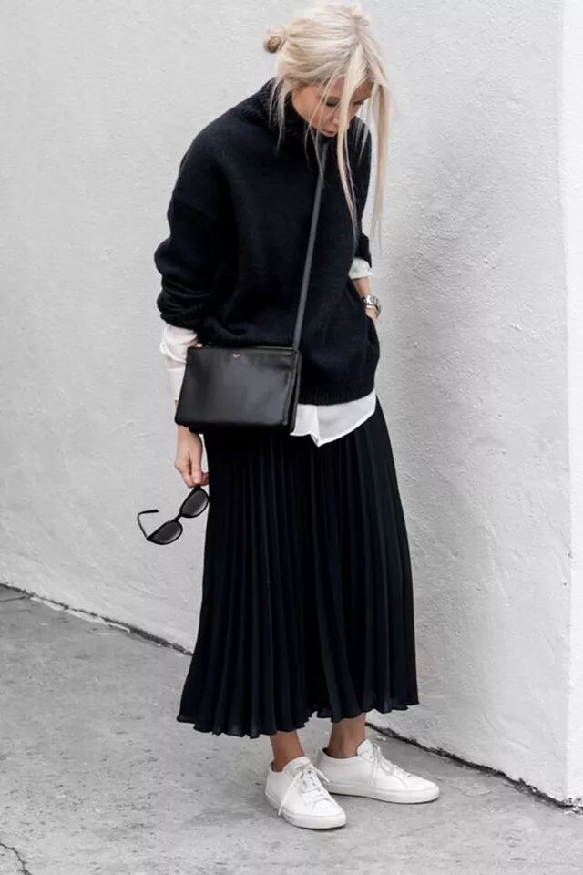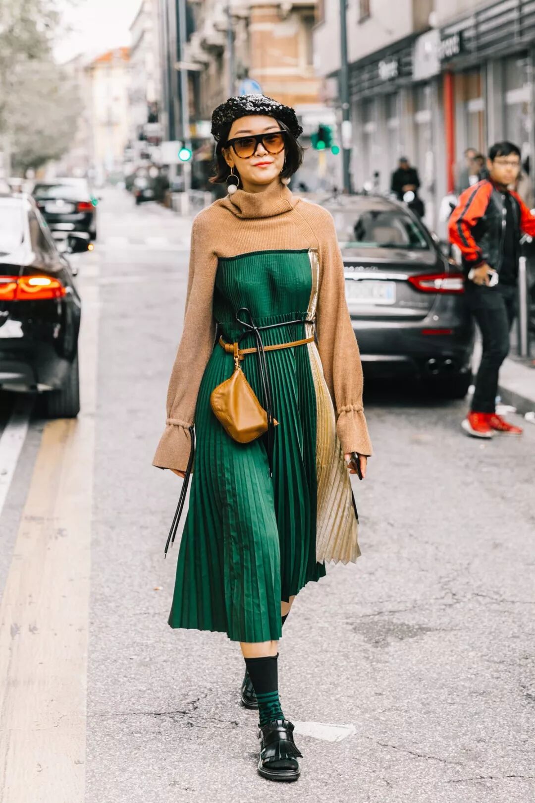 搭配百褶裙則多了幾分文藝復古的腔調架式,很有秋冬的韻味風情。