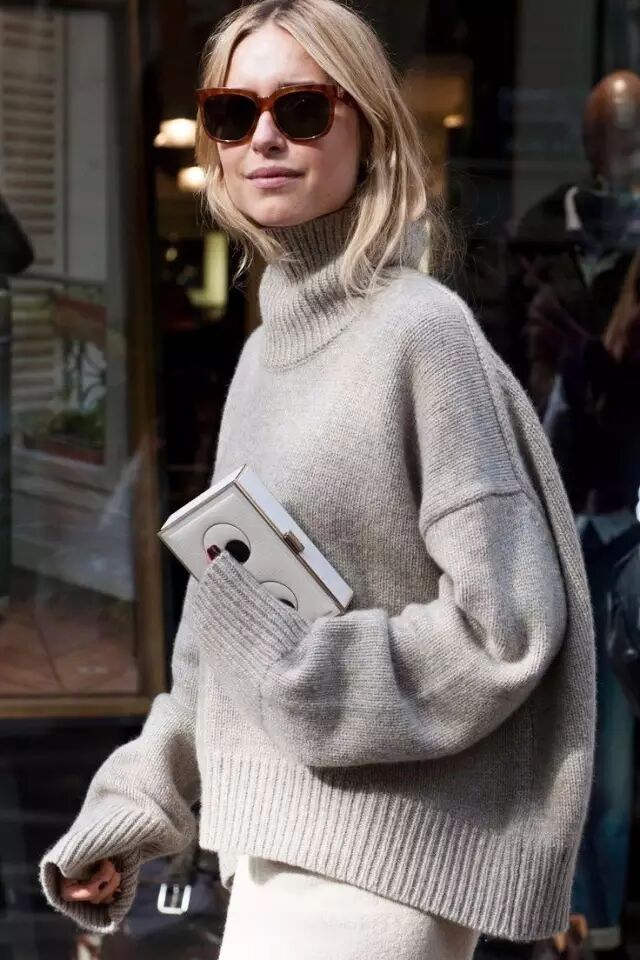 相比之下,領子寬鬆的高領毛衣就對我們友好得多,是人人都能駕馭的款式。