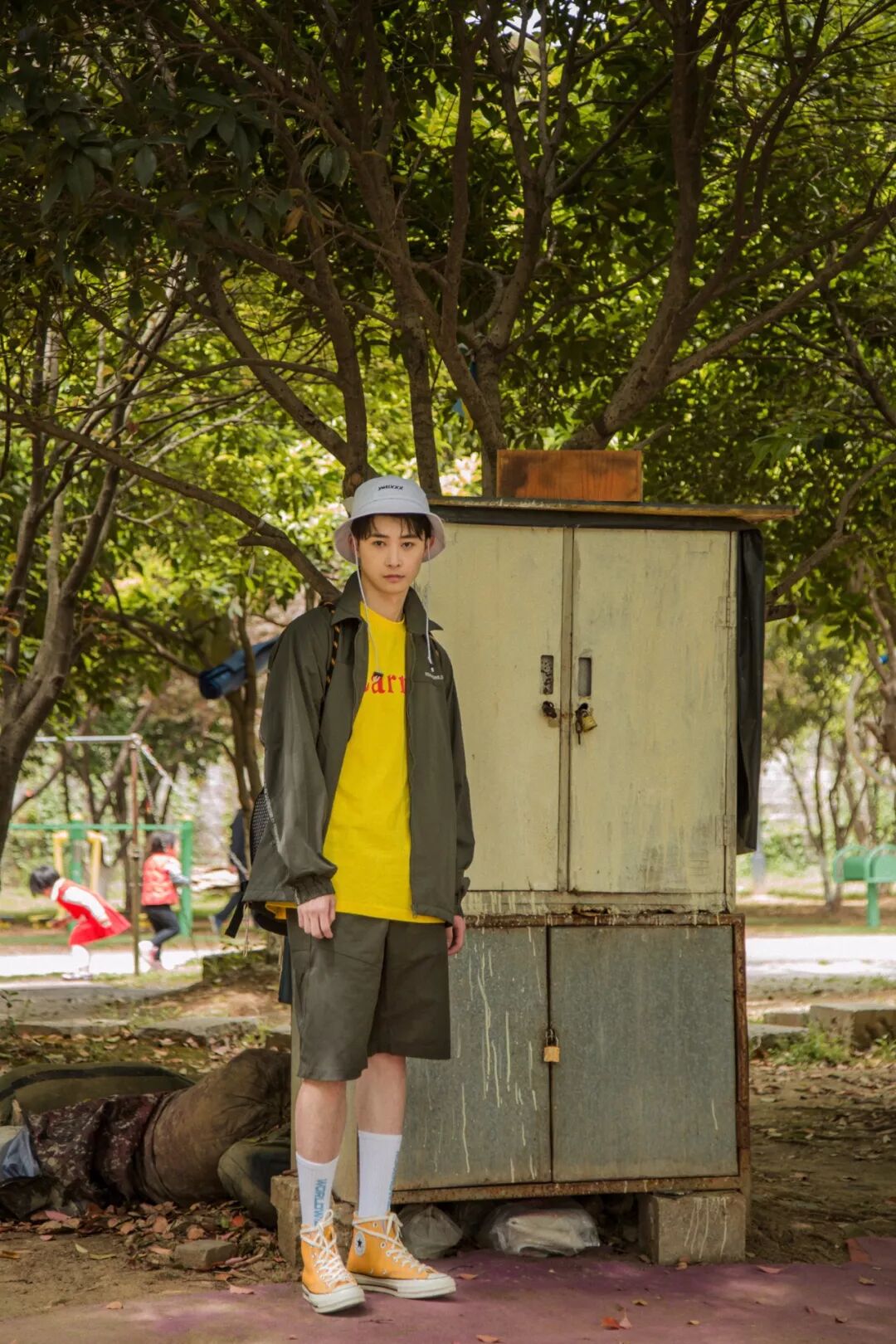 防風外套還是有必要穿滴,內搭一件亮色的tee,下身可以選擇顏色相近的短褲,熱了就脫掉外套!襪子與帽子的顏色也可以上下呼應,呈現出躍躍欲試的朝氣,少年感糊一臉!