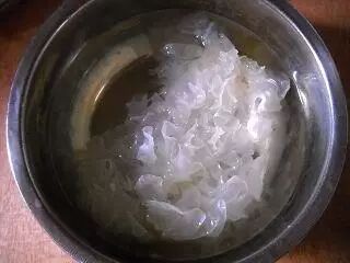2,銀耳提前泡發;洗淨瀝幹水分備用。