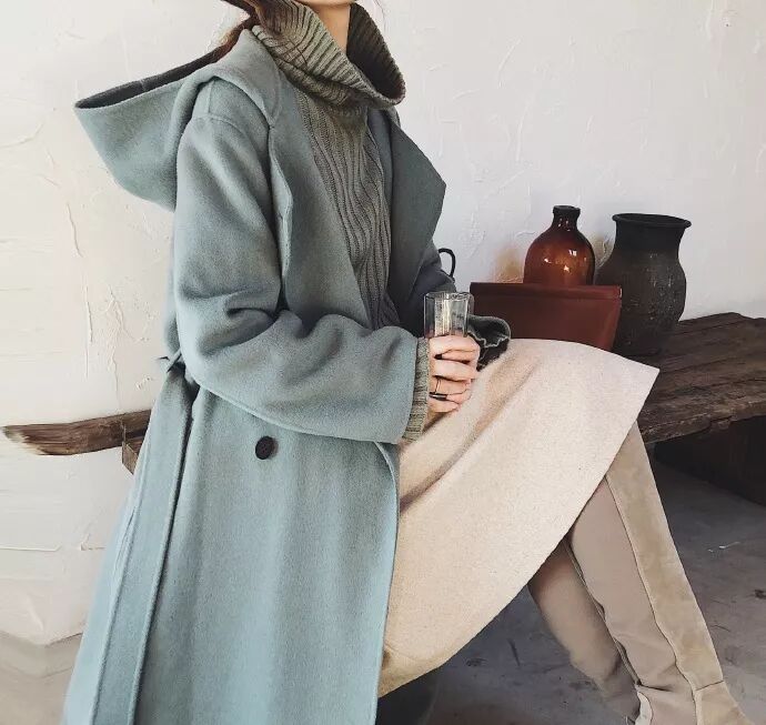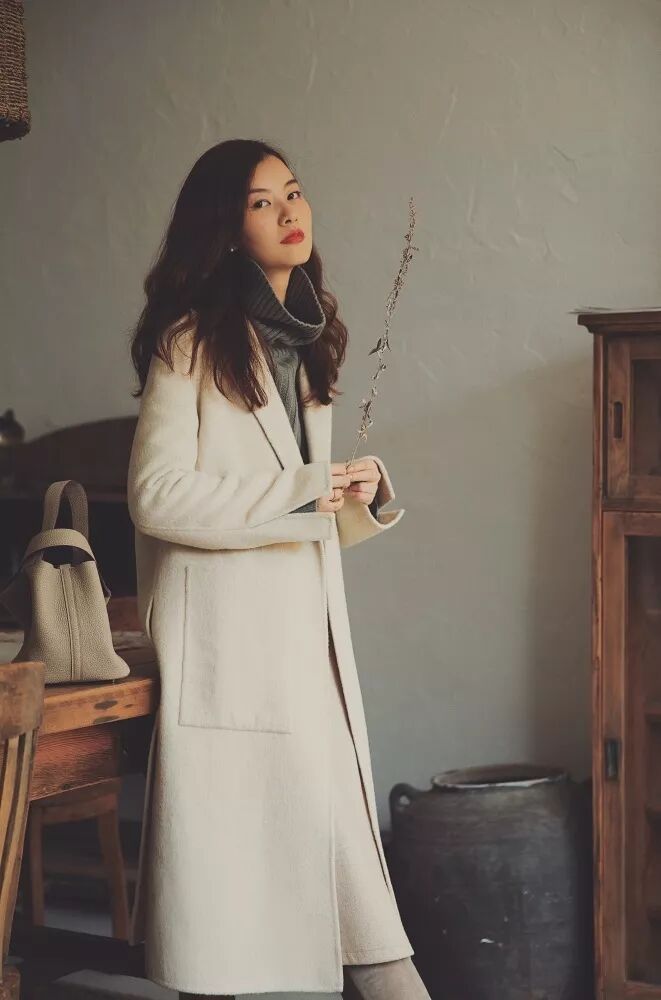 相對於其他高領衫的厚重,小高領的精致輕薄與大衣的厚重感融合得剛剛好,完美。