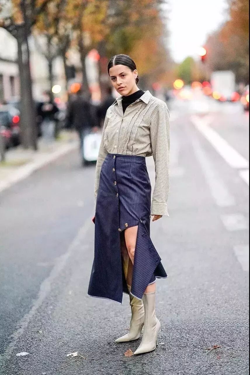襯衫+小高領的疊穿,能夠讓你的造型更加的富有層次感卻又不顯累贅、風格也更加的百變。
