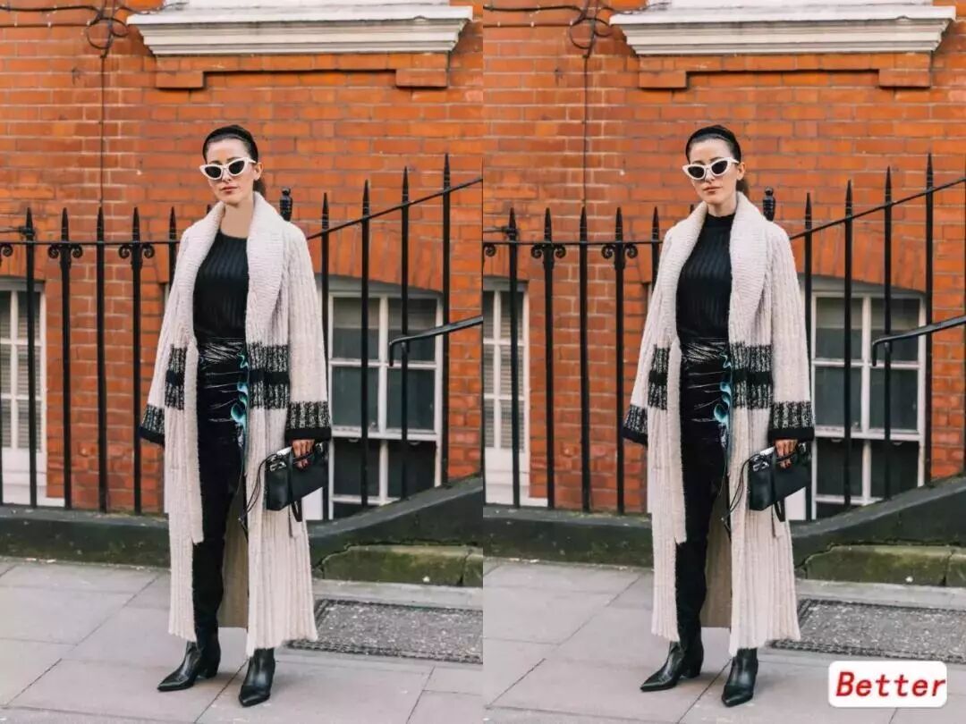 無論是帥氣的皮質或是氣質的呢大衣,都能很好的駕馭住,上身簡單利落,又有優雅跟氣質感。