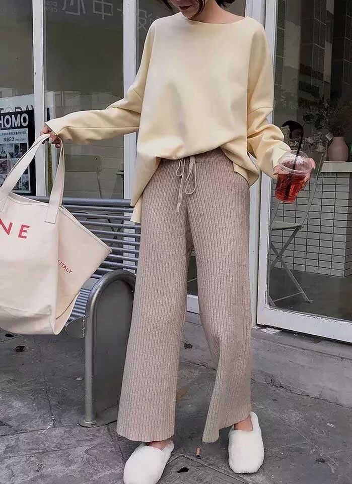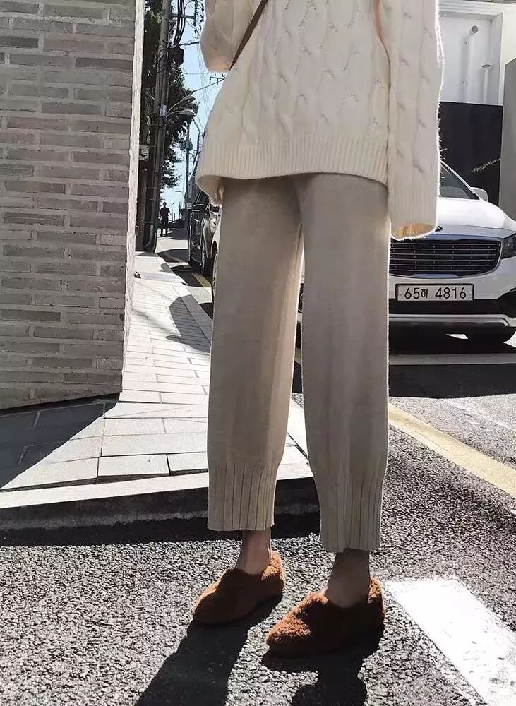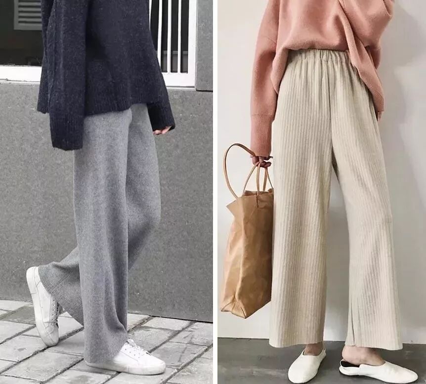秋冬穿針織直筒褲,看著就很溫暖。特別推薦米色系和灰色的針織直筒褲!