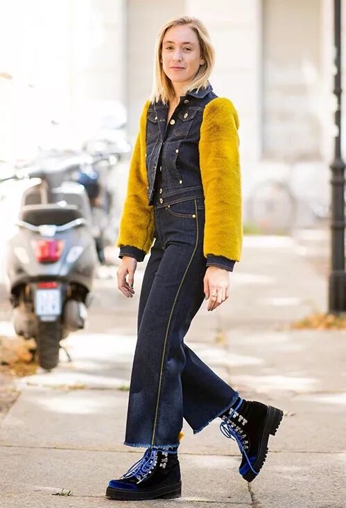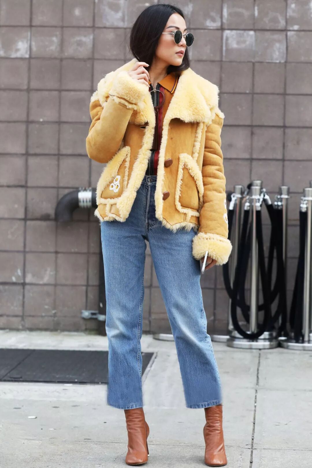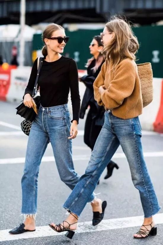 大表姐的牛仔直筒褲搭配短毛衣,顯腿長又清爽。
