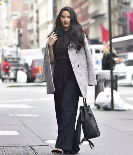 但是,這類身材的女生秋冬穿闊腿褲的時候大概就是上圖這個效果了,顯胖效果雙倍!