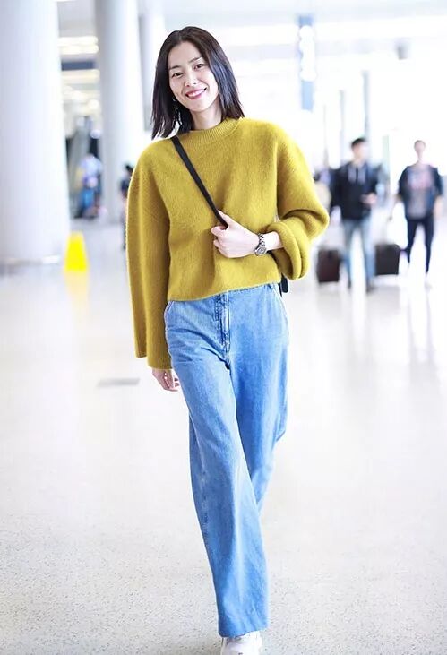 只要是這樣筆直褲管設計的都可以統稱為直筒褲,而腿細的女生就可以相對選擇貼身一點的直筒褲(像上圖宋茜那條的松緊程度);而腿粗的女生可以選擇褲管寬鬆一點的直筒褲(像上圖劉雯那種褲管大小的直筒褲)。