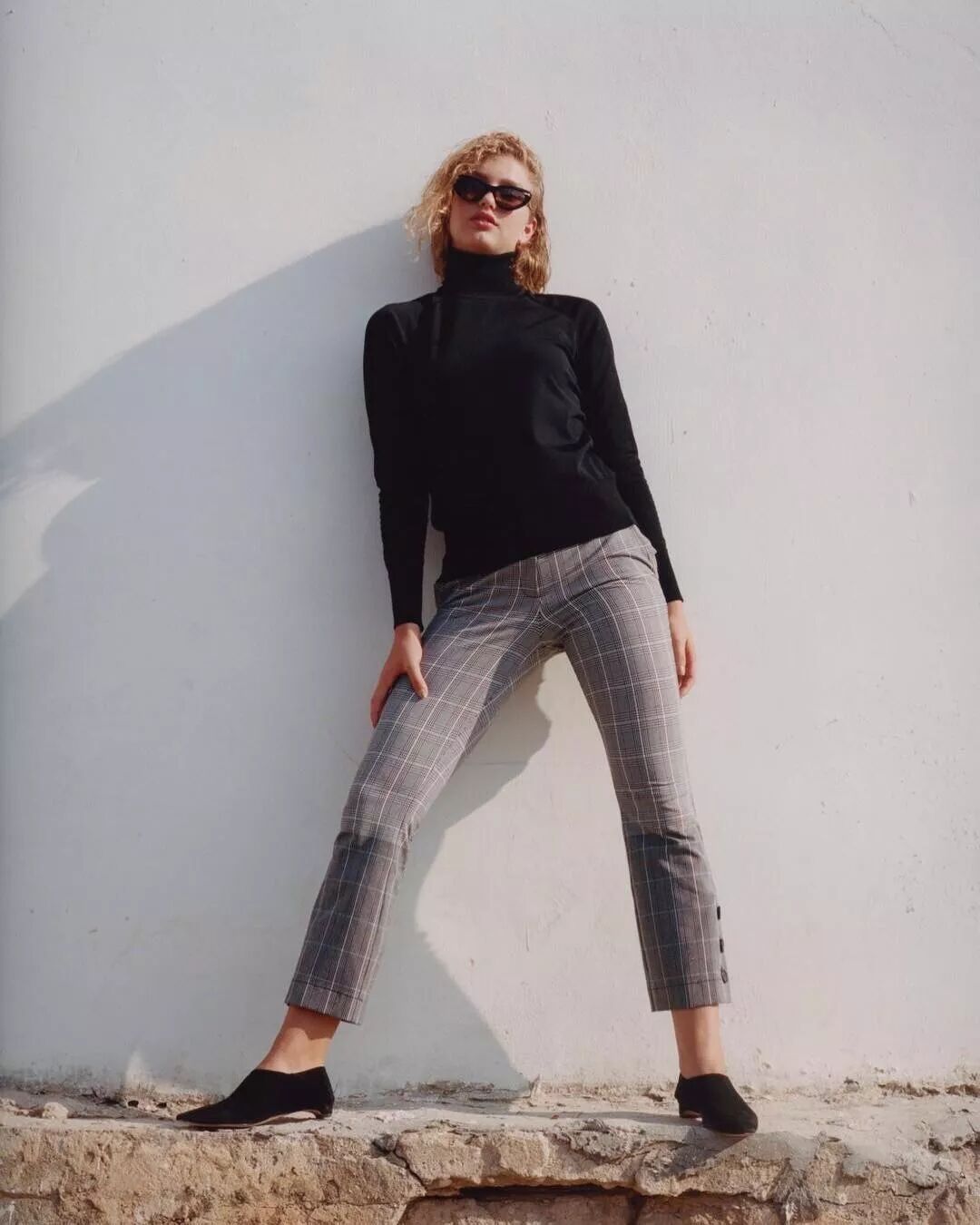 但是因為針織面料實在是柔軟,上身之後像膝蓋處、屁股還有褲襠這邊都容易顯示出來,所以最好建議瘦一點的選擇針織直筒褲穿;而且搭配的時候最好不要把上衣都塞進針織直筒褲,稍微前邊或者側邊的上衣塞一點點到針織直筒褲里就行。