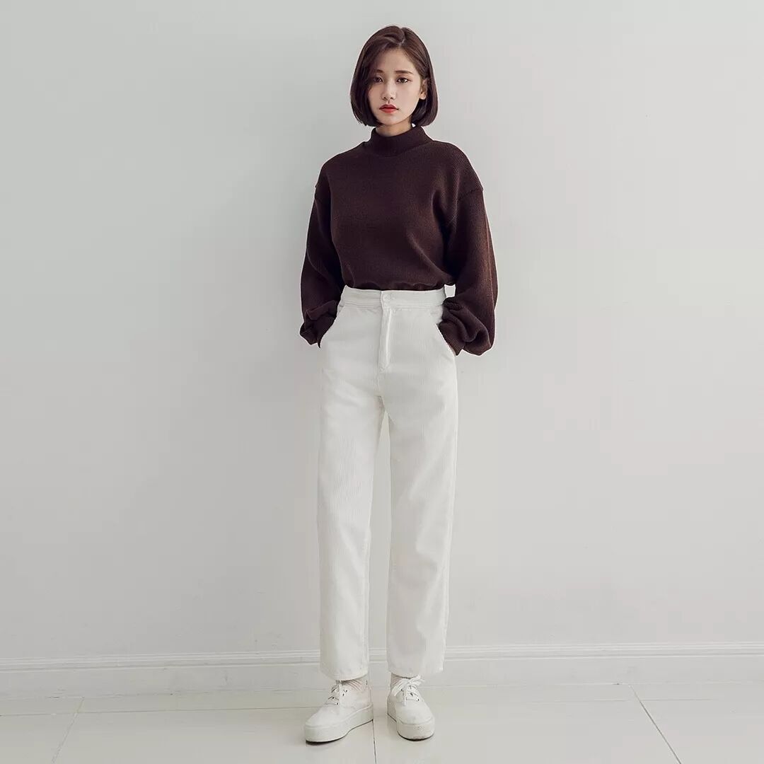 胯大和腿粗的女生選擇燈芯絨直筒褲可是要自己好好斟酌一下哦,因為燈芯絨面料真的巨容易顯胖。