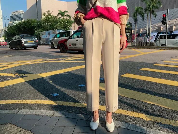 ★★★微胖的女生選擇褲裝的時候:面料要相對挺闊有型;直筒褲更適合胯寬和小肚子的女生。