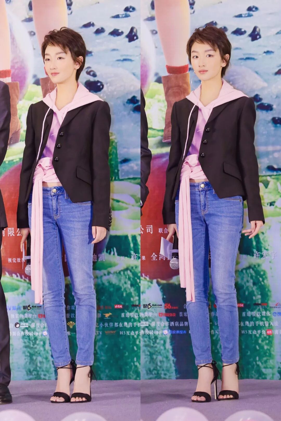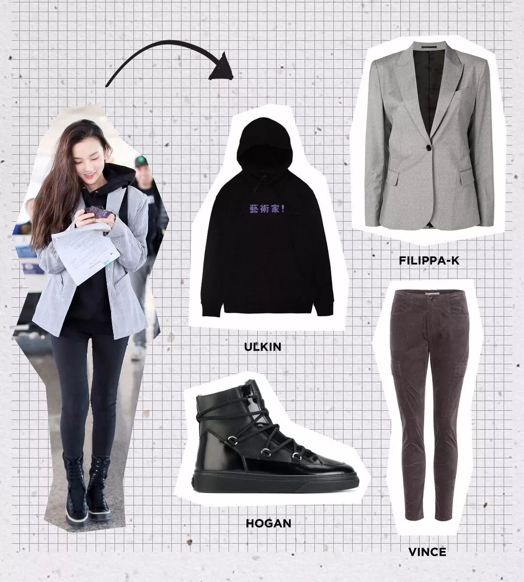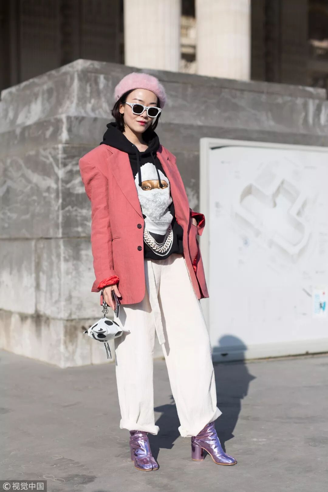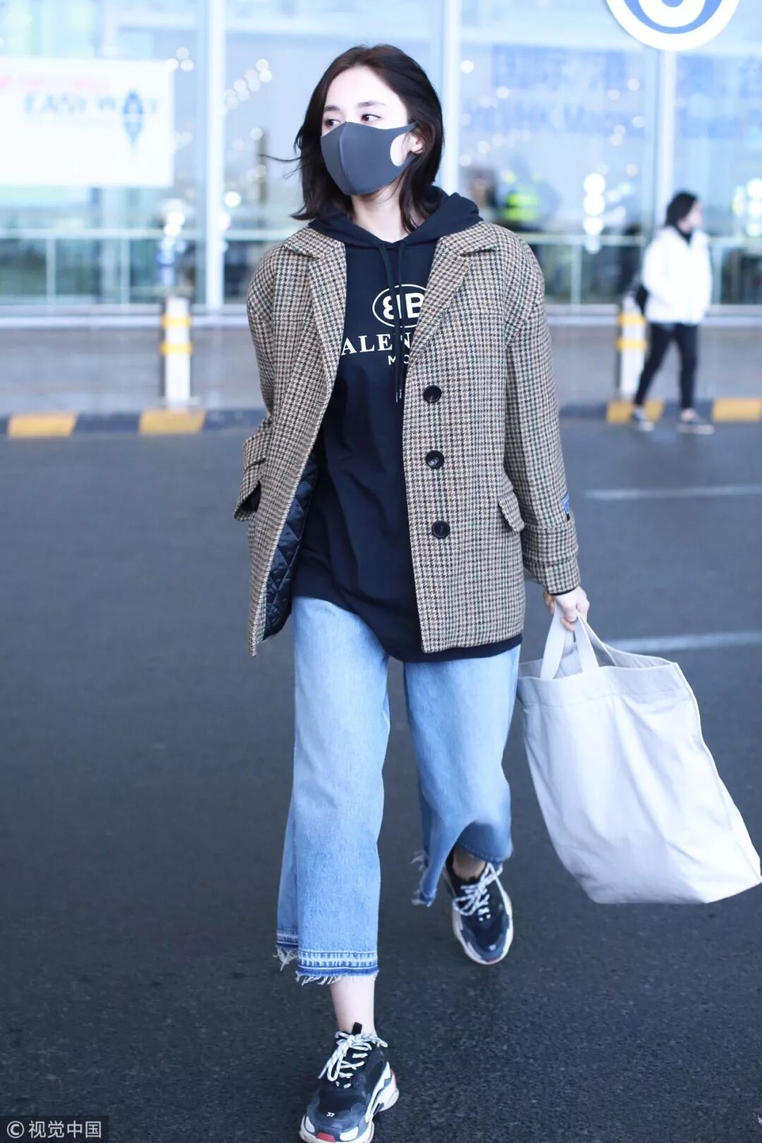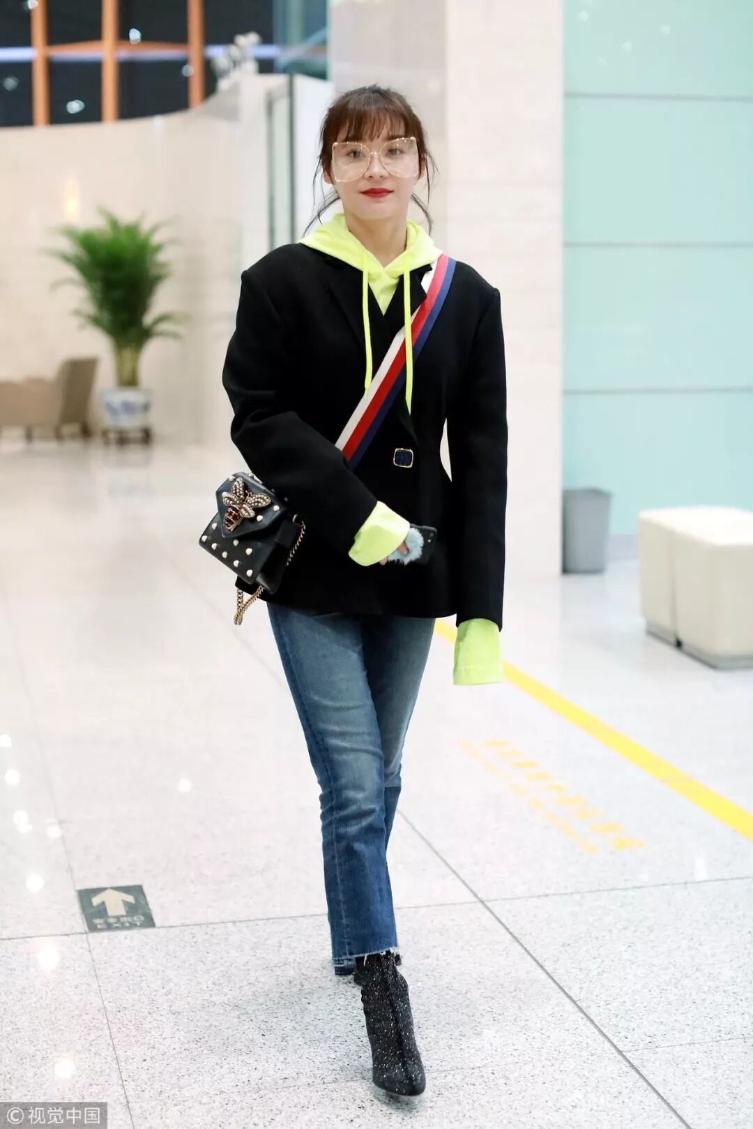 袁姍姍、辛芷蕾等85後代表同樣利用西裝+帽衫的造型讓自己充滿青春校園感: