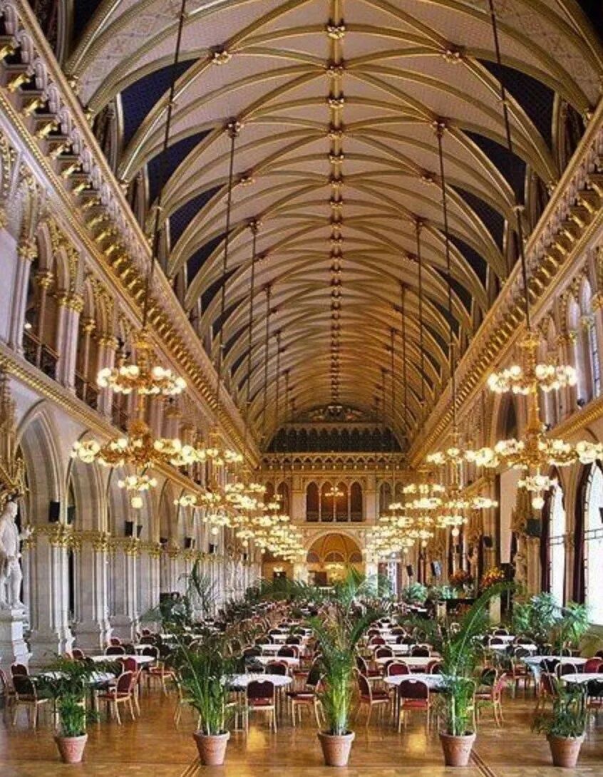 市政廳由新哥特式風格的藻類石灰巖和石灰巖建造而成。占地面積19,592平方米,總面積113,000平方米,七個庭院和1,575個房間。這里的球場長度超過2.5公里,是舉辦會議和慶祝活動的場所,也是維也納最壯觀的地標之一。