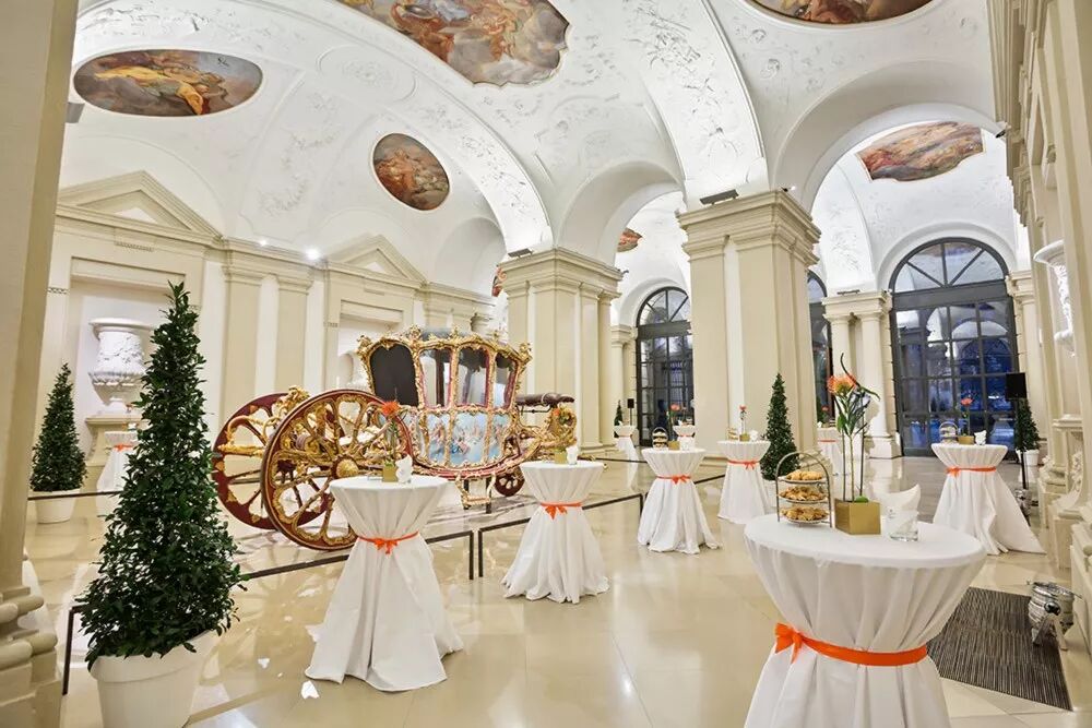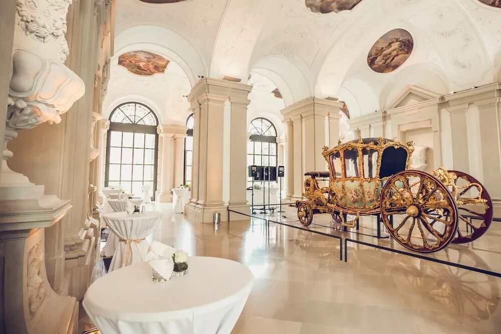 列支敦士登花園宮同樣適合舉辦夢幻婚禮。適用於婚禮的是Sala Terrena和Hercules Room是維也納最大的民間巴洛克式大廳(普通的世俗婚禮僅在Sala Terrena舉行)。為了完成童話般的婚禮,新娘可以直接乘坐長途汽車或豪華轎車前往這里。在Sala Terrena還有一個金色的18世紀儀式馬車。