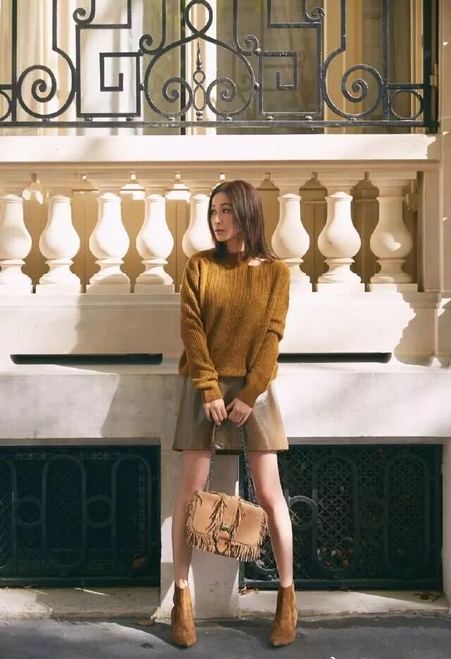 佘詩曼有氣質有顏值就是不一樣,可以挑戰各種穿衣風格,她穿了一件偏棕色的針織毛衣,在鎖骨那里露出個洞,完美的展現了自己的鎖骨美,下身一條皮裙再配上她穿的棕色靴子,就尤其襯托出她這雙美腿。