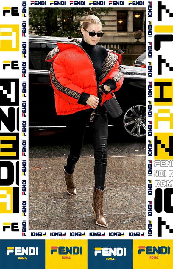 但,當然不是!這次聯名絕非這麼簡單,全新的FENDI標誌貫穿整個系列,還被運用到各式各樣的成衣和配飾上,簡直一派勢要拿下今年金·LOGO大獎。