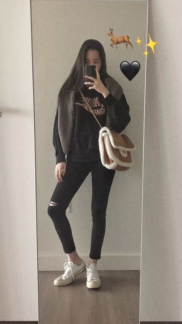 ▲ 幾乎要變成娜娜招牌的衛衣,全黑的重點在豹紋 LOGO 和駝色包包!