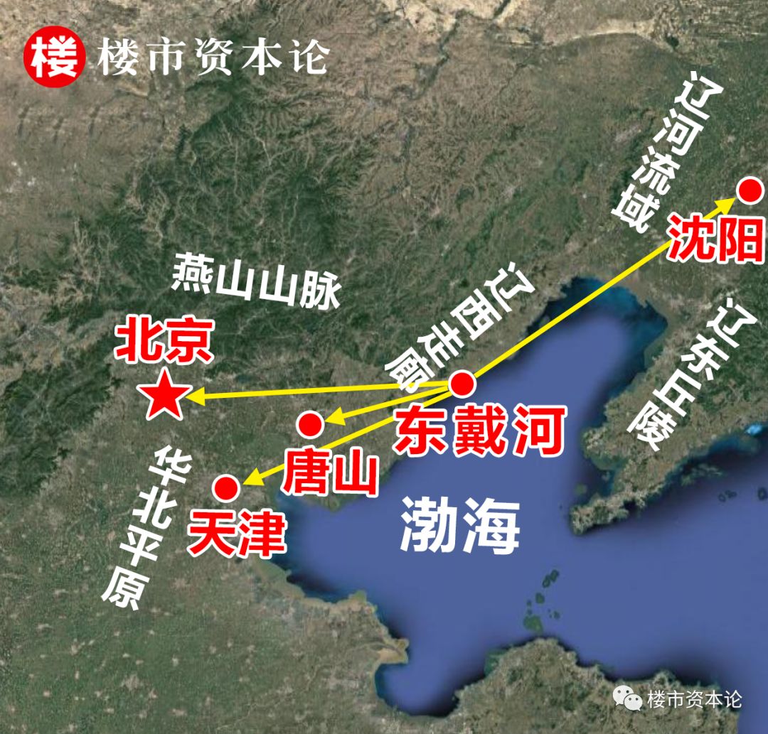 東戴河板塊背靠燕山,西南面向首都北京、天津,東北方向通過遼西走廊直抵瀋陽,位處環渤海經濟圈多座超大城市的輻射範圍內,在地緣上有著獨特的優越性。