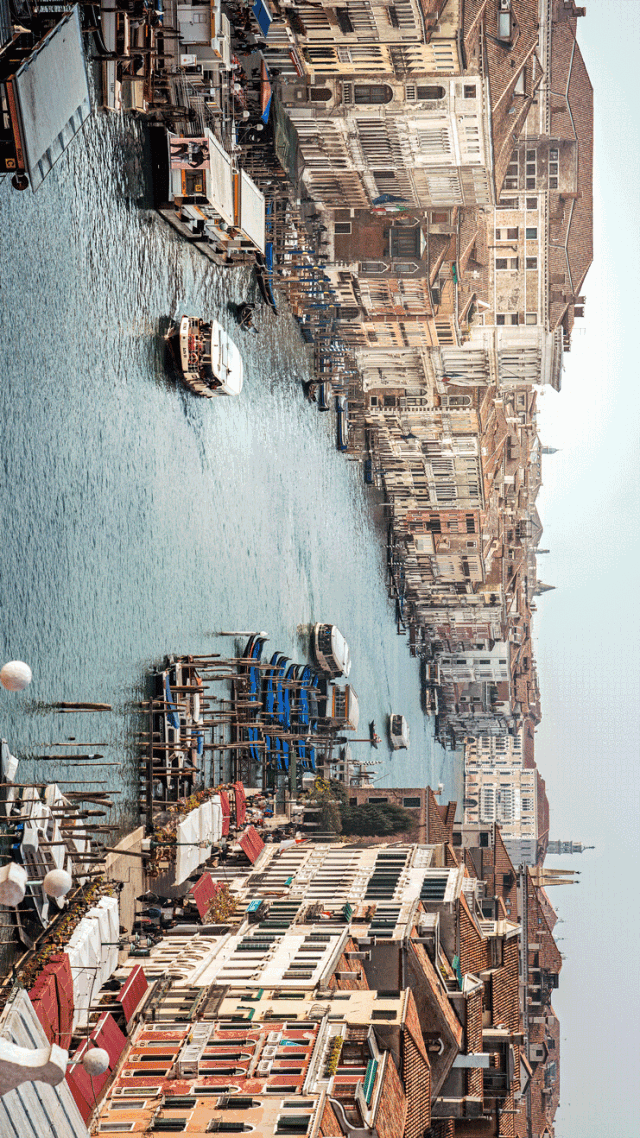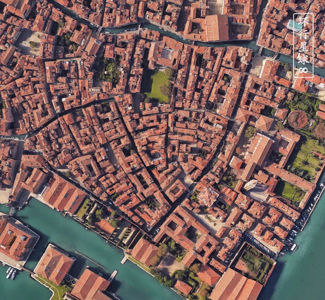 威尼斯看似分作兩個主要島嶼,但實際上她由眾多小島嶼組成,其中水道縱橫,中間有一條反S形水道作為主航道。