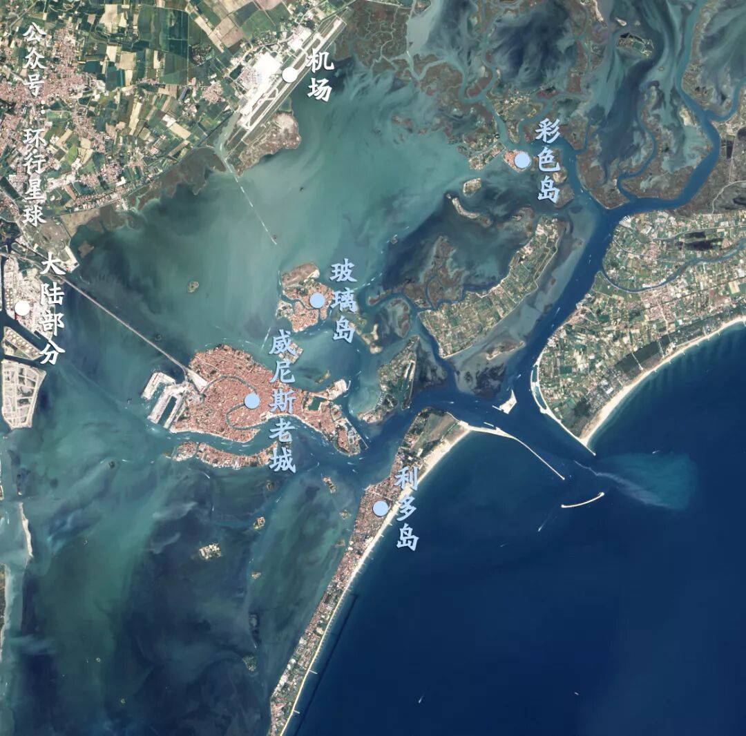 潟湖中的威尼斯老城及玻璃島與彩色島