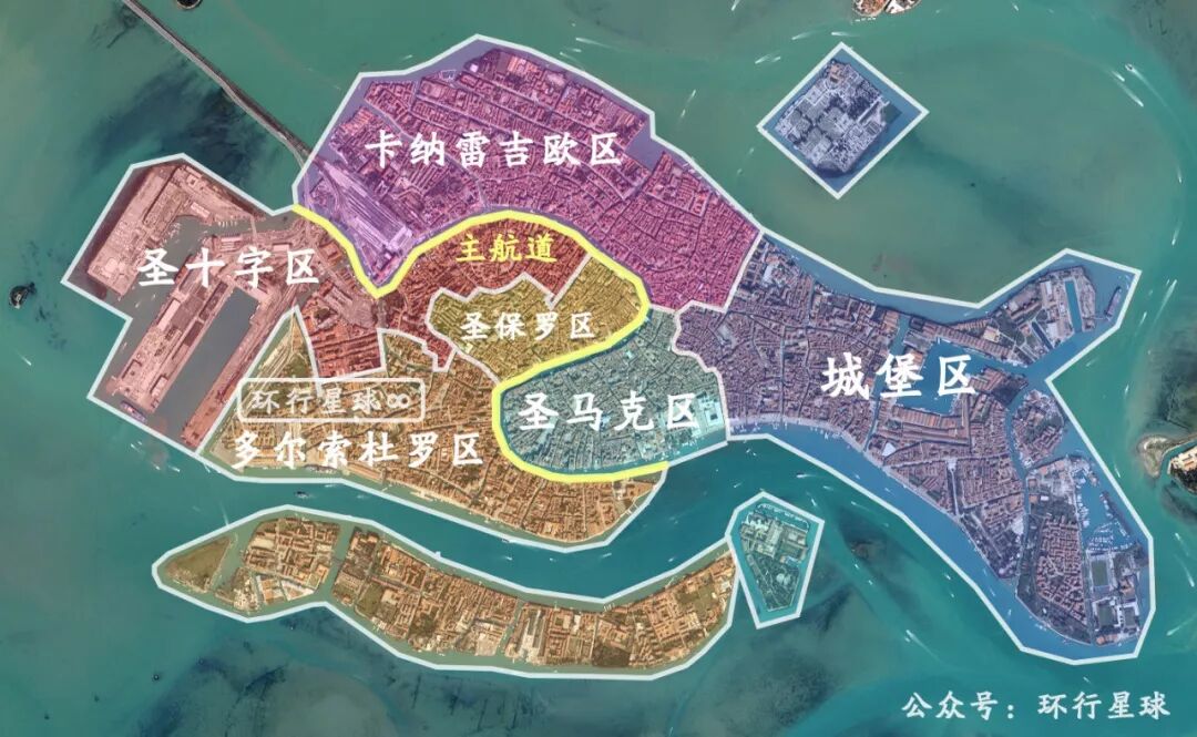 大家所熟知的水上威尼斯,僅為義大利行政規劃中廣域市威尼斯的一部分,我們且稱之為老城區。