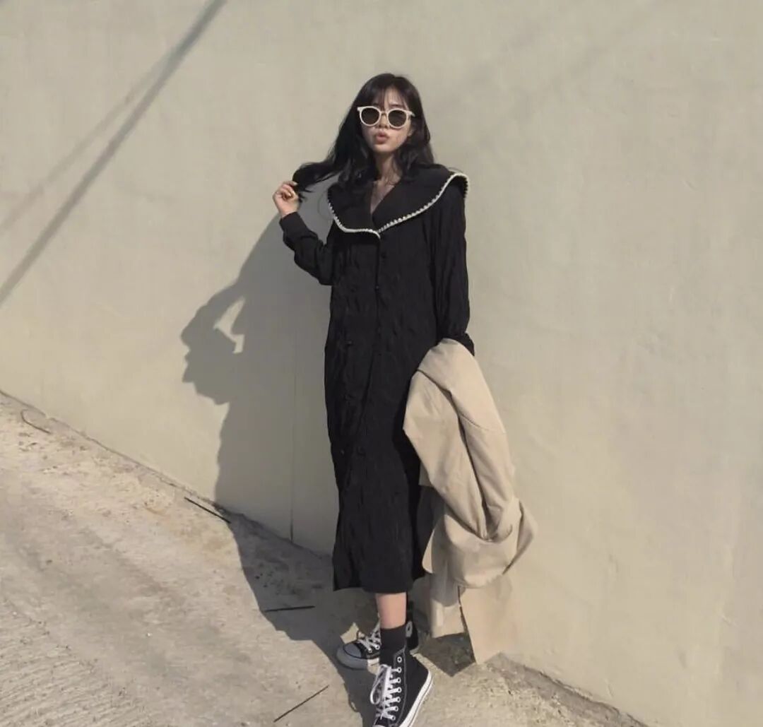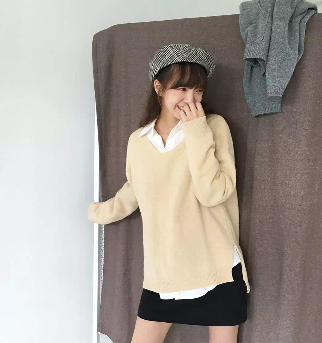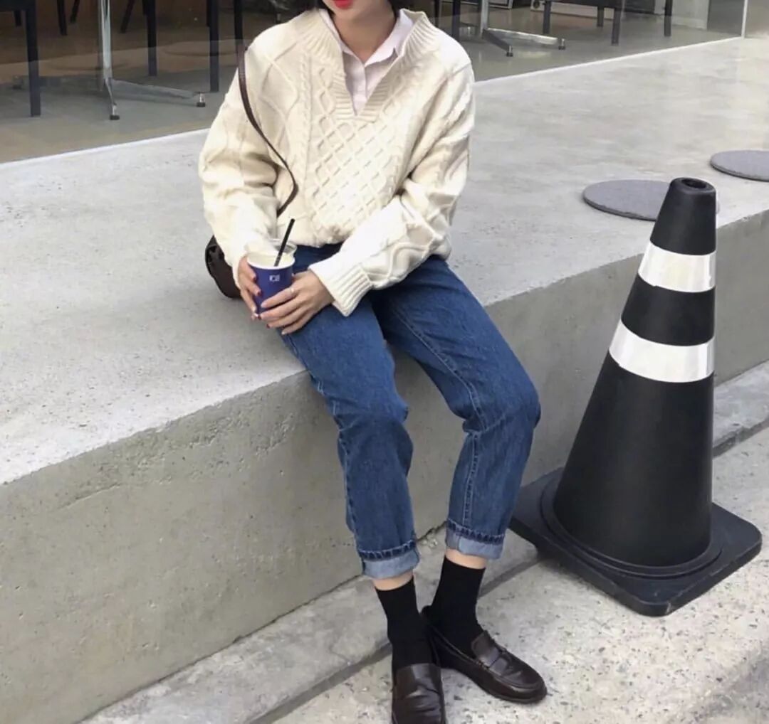 寬鬆的毛衣搭配純白襯衫精致感瞬間提升的