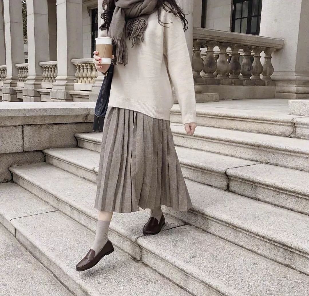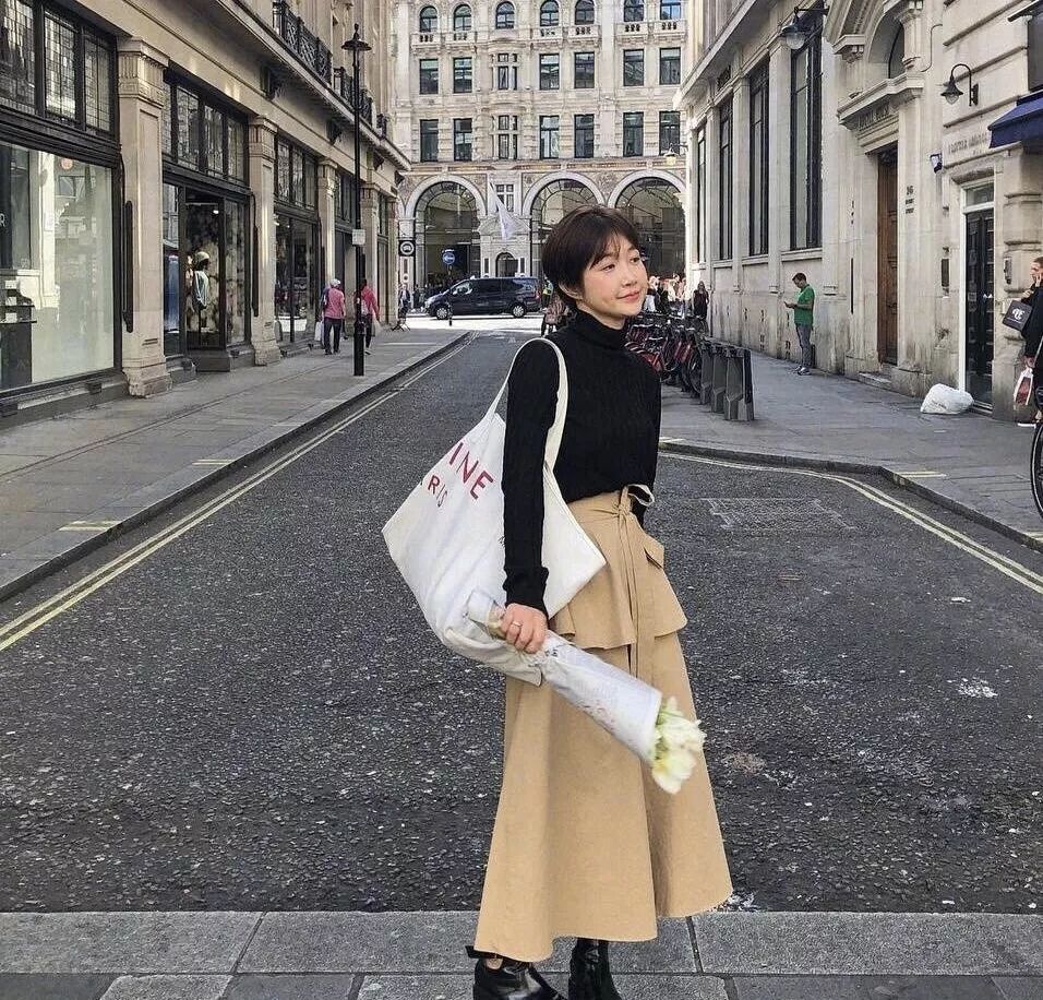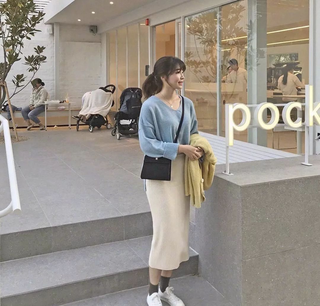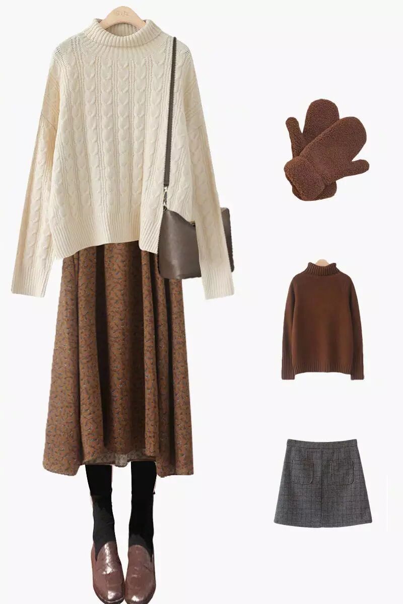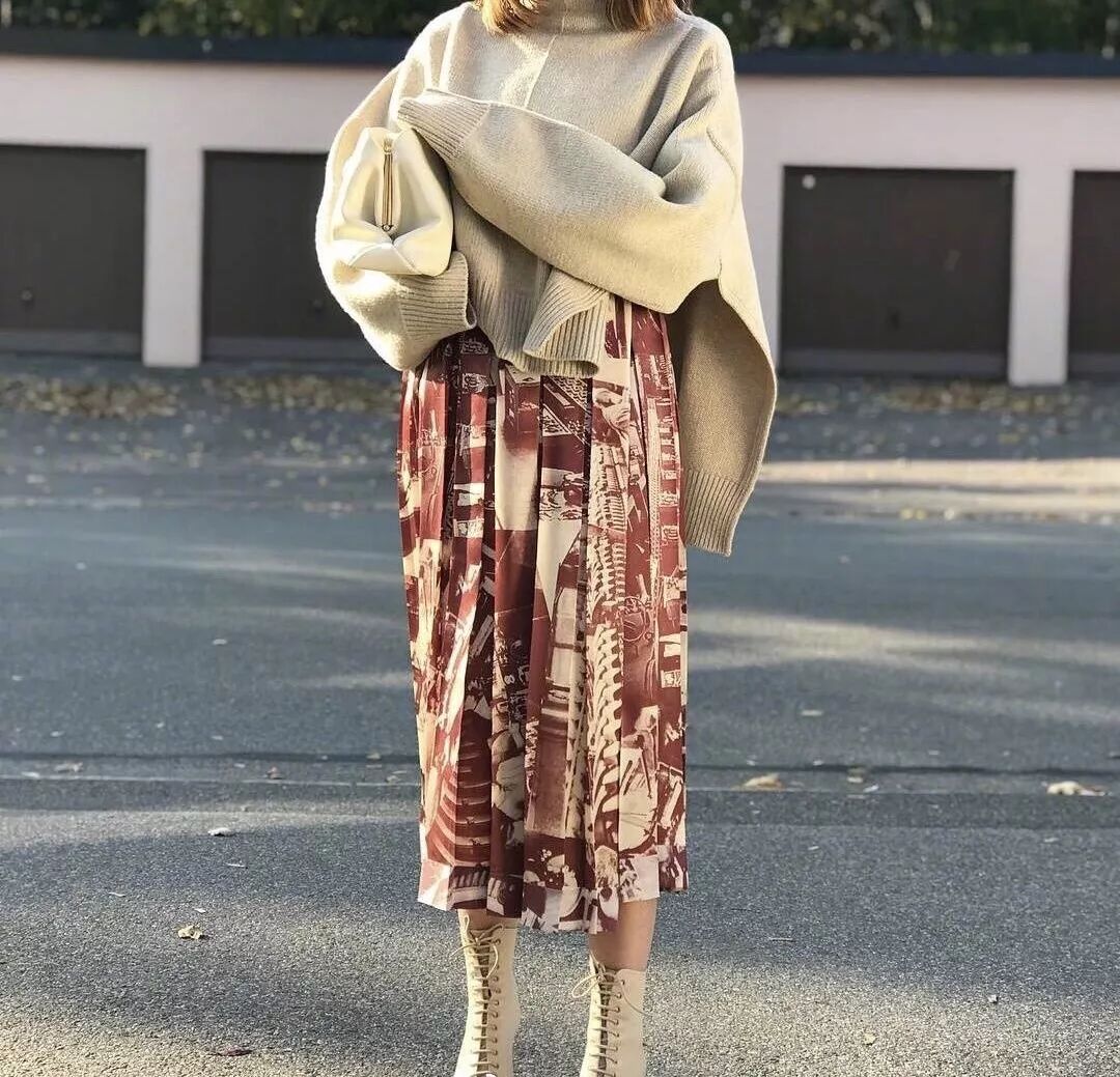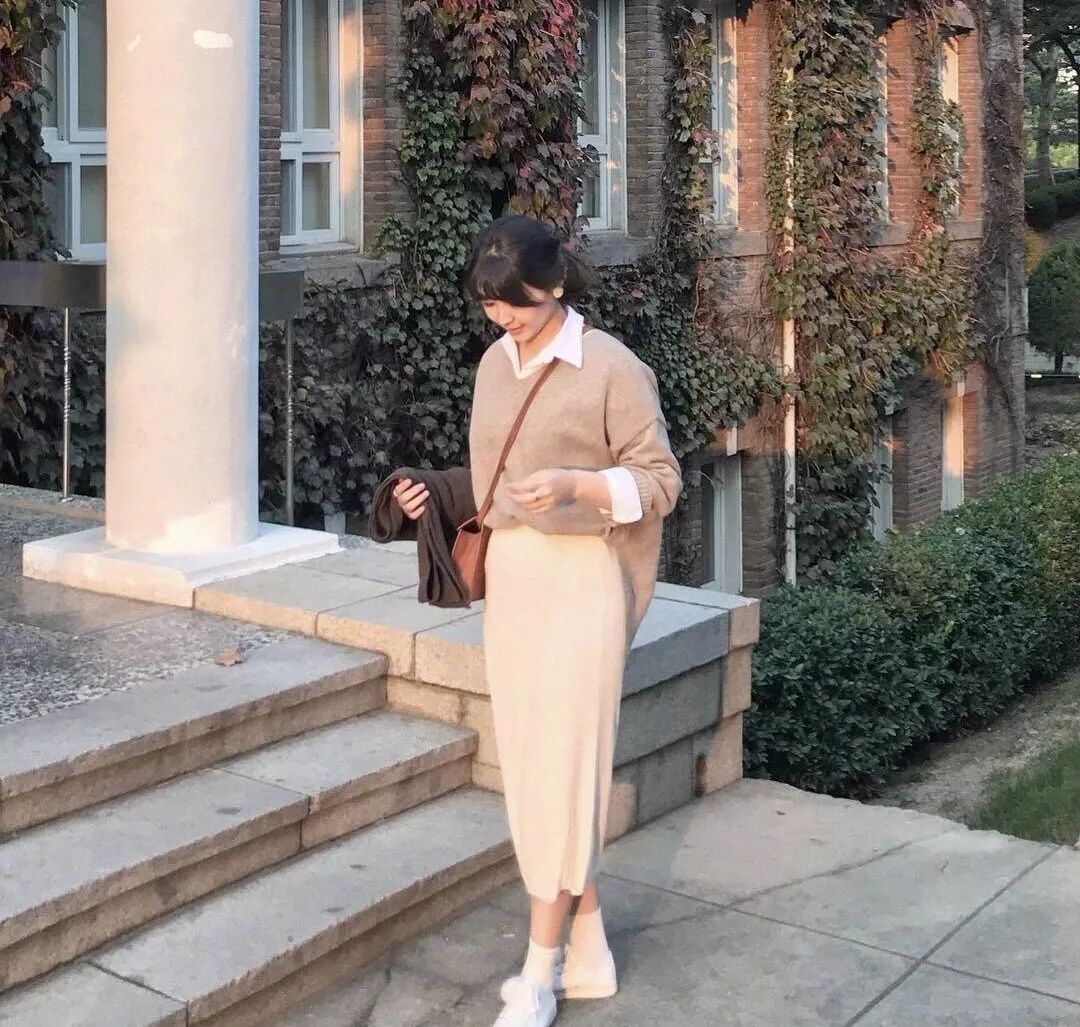 毛衣搭配半裙就是很有女性感覺的穿搭,整體都會是比較柔軟感覺的~