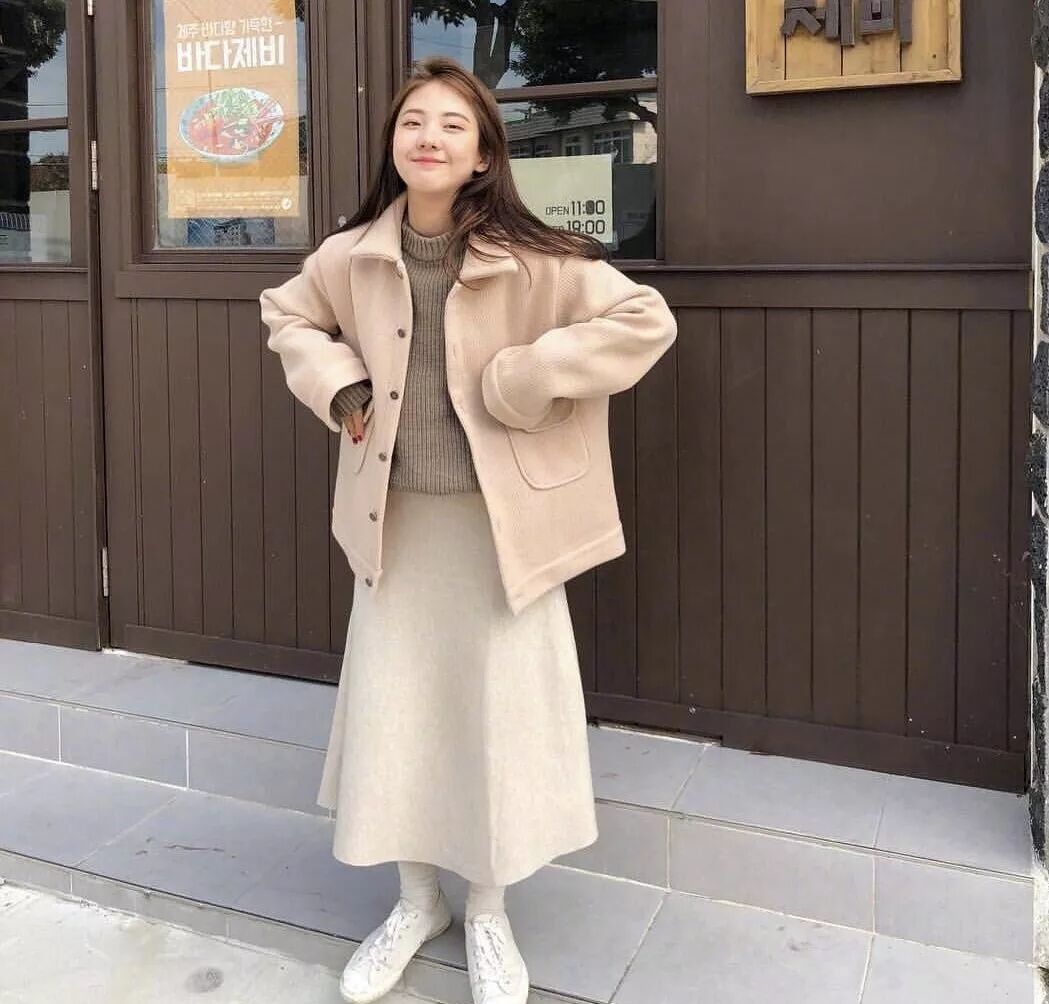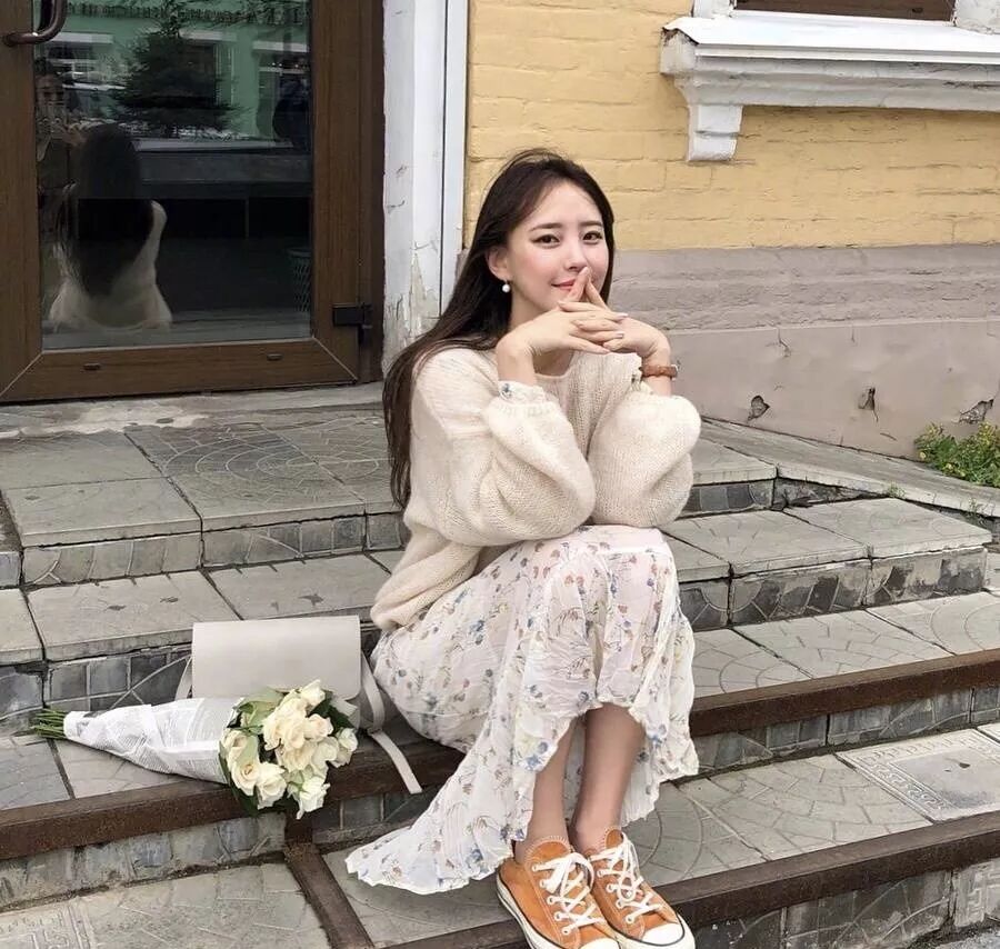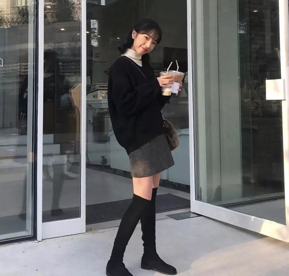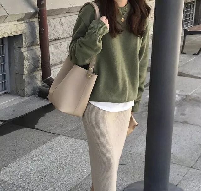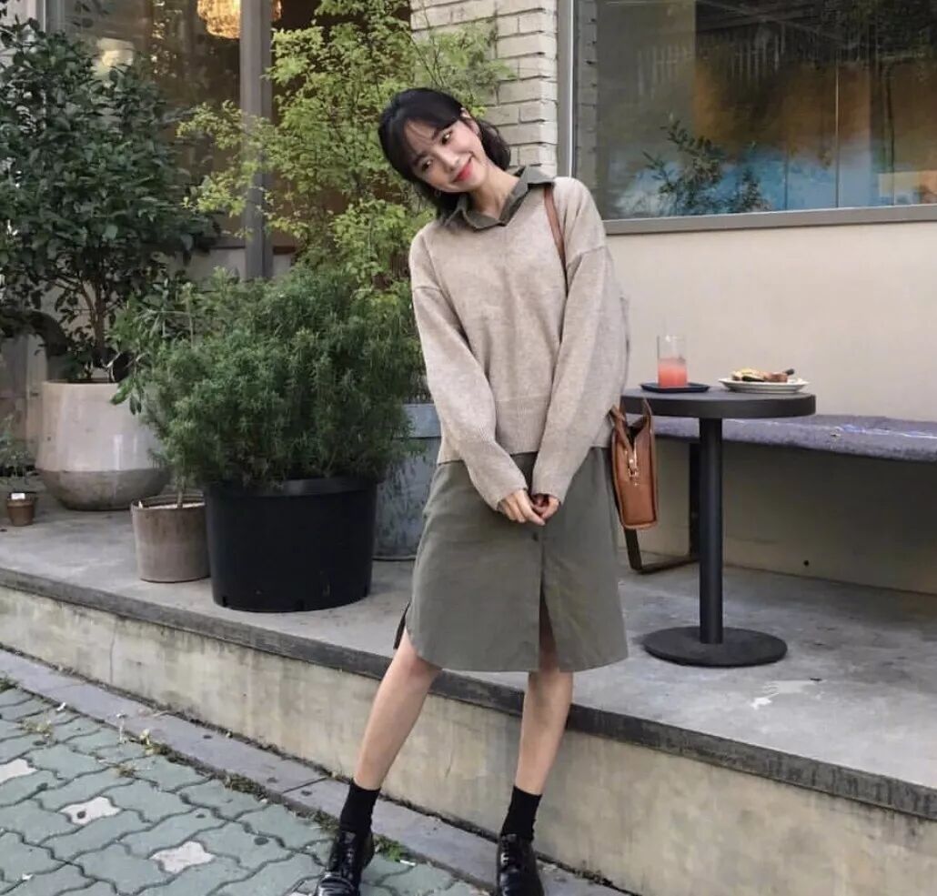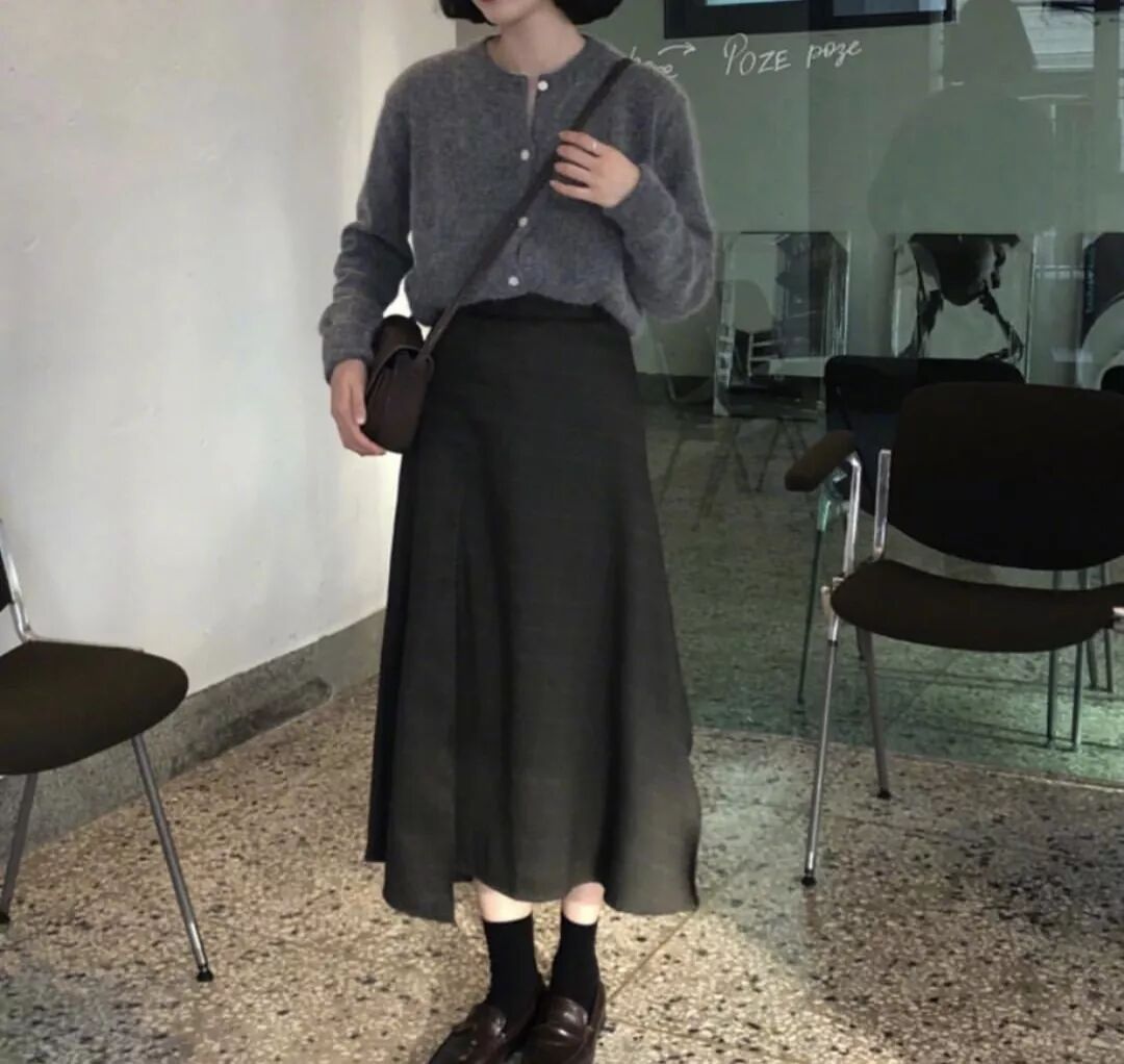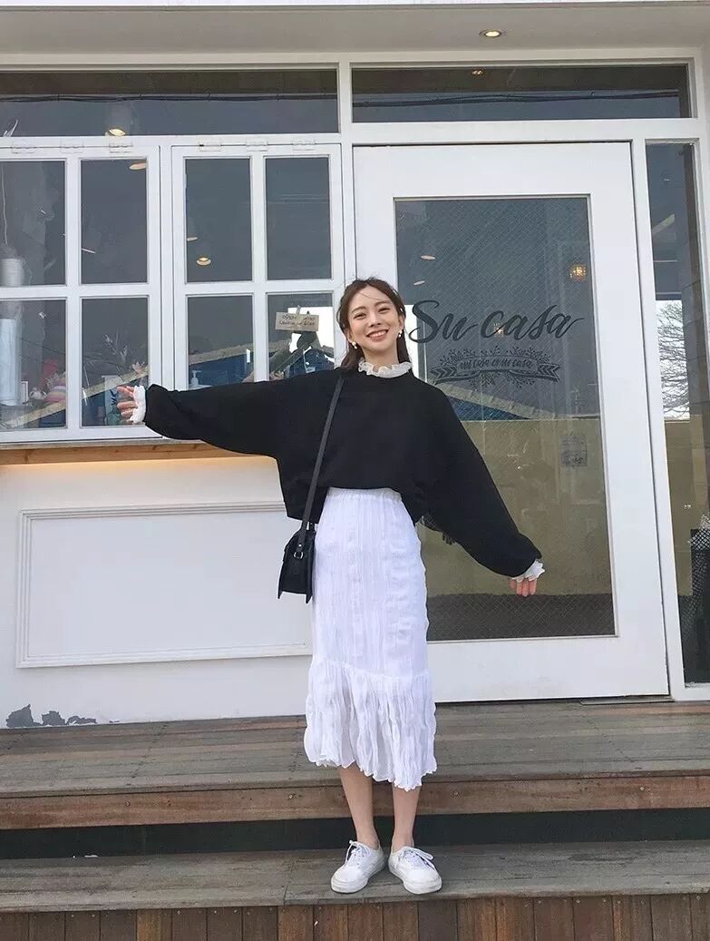 毛衣搭配半裙就是很有女性感覺的穿搭,整體都會是比較柔軟感覺的~