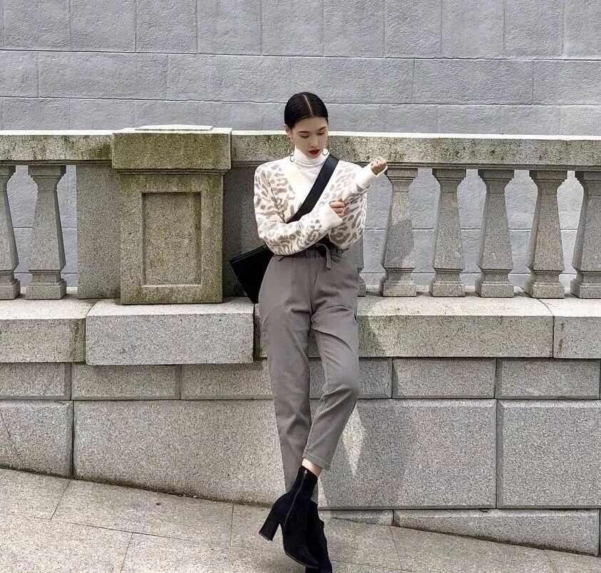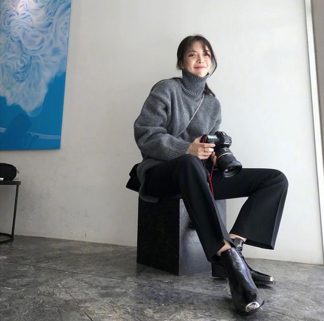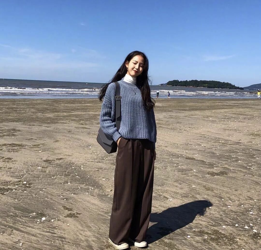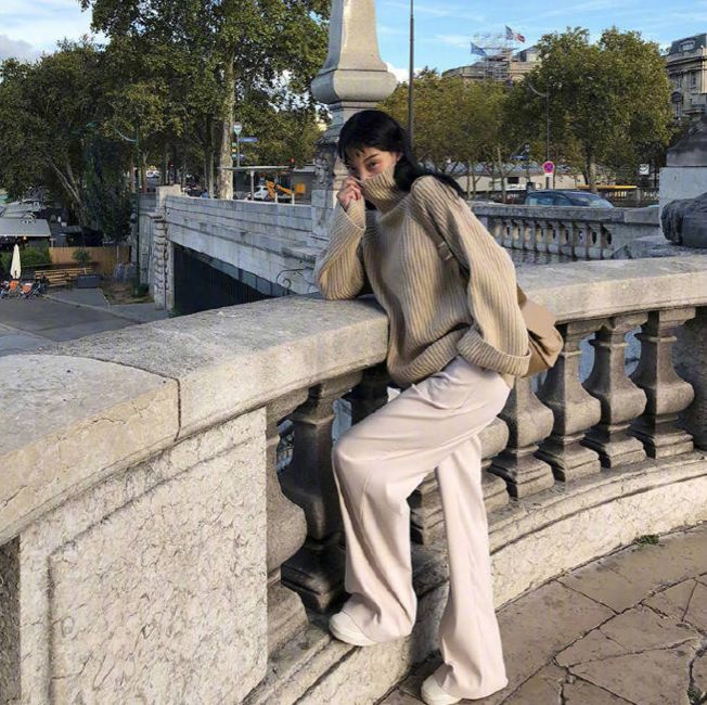 西裝褲闊腿褲和毛衣搭配都是比較帥氣的風格,