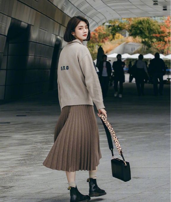 百褶裙款式搭配毛衣整體多了一些少女氣息