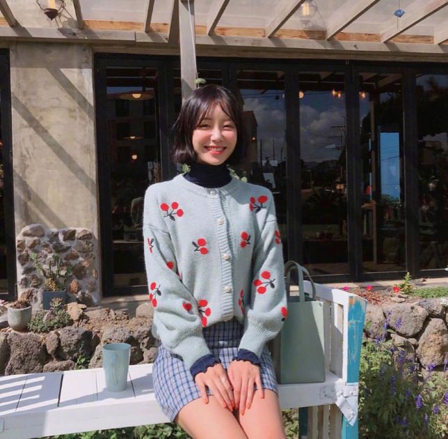 毛衣與小碎花元素的疊穿會是比較甜美的感覺