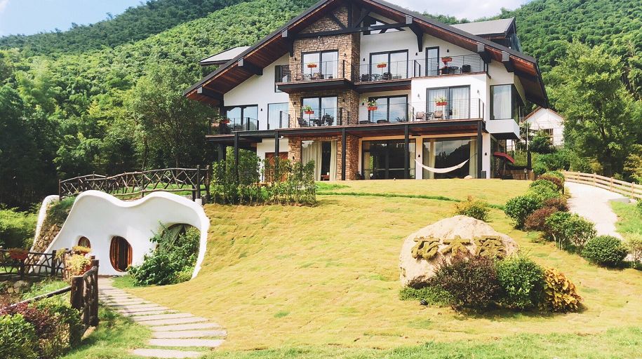 在莫幹山南路村的大山深處,,一座童話里的房子靜靜矗立,它有一個好聽的名字叫花木深。據說是老板因為女兒的一個夢,花了三年時間才建出來的,真的是滿滿的情懷呢!