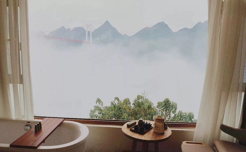 民宿位於黃果樹瀑布景區邊上,懸在山腰上的一個布依族村子里。山里雲霧很大,仙氣裊裊,見到它有種跋山涉水終不負期待的感覺!