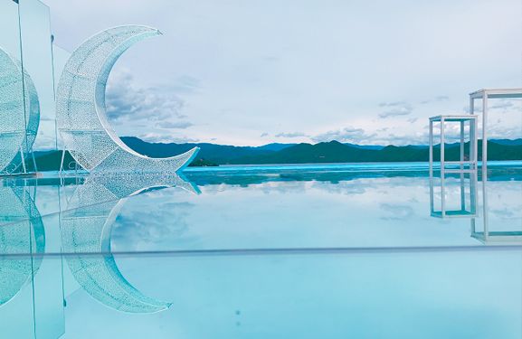 這是一個用光和影串掇起前世今生的夢幻仙境,徜徉於連綿的青山與逶迤的河流之邊,俯瞰美麗的漓江交 匯的景色,得一江春水, 與君共度浮生。