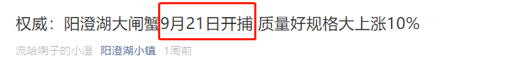 今年陽澄湖大閘蟹開捕時間定在9月21日