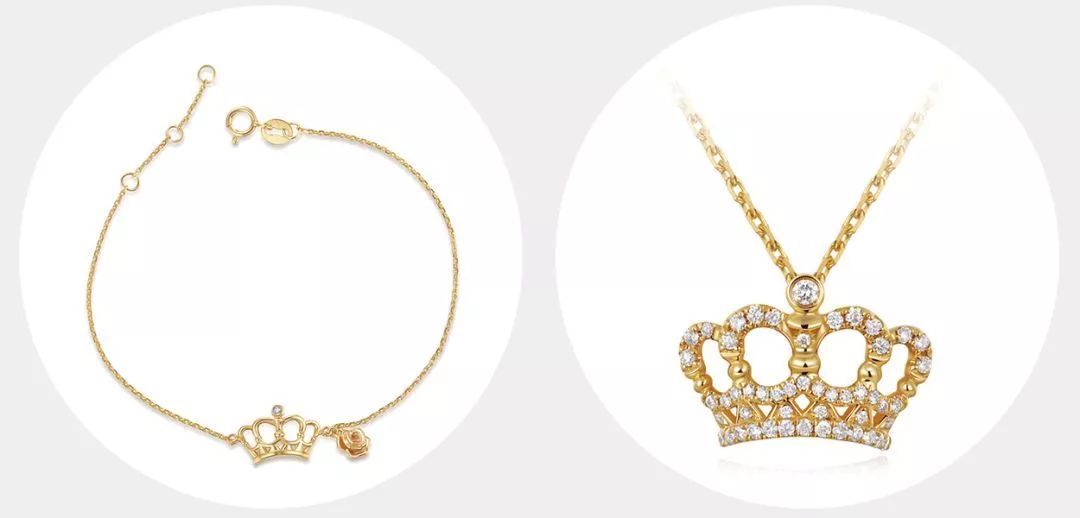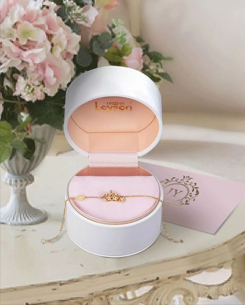 婚禮伴手禮曝光,王冠系列鑽石手鏈C位吸睛,18k金王冠搭配以鑽石為花芯的嬌俏玫瑰,更貼心飾以JY吊墜,祝福晉嫣!
