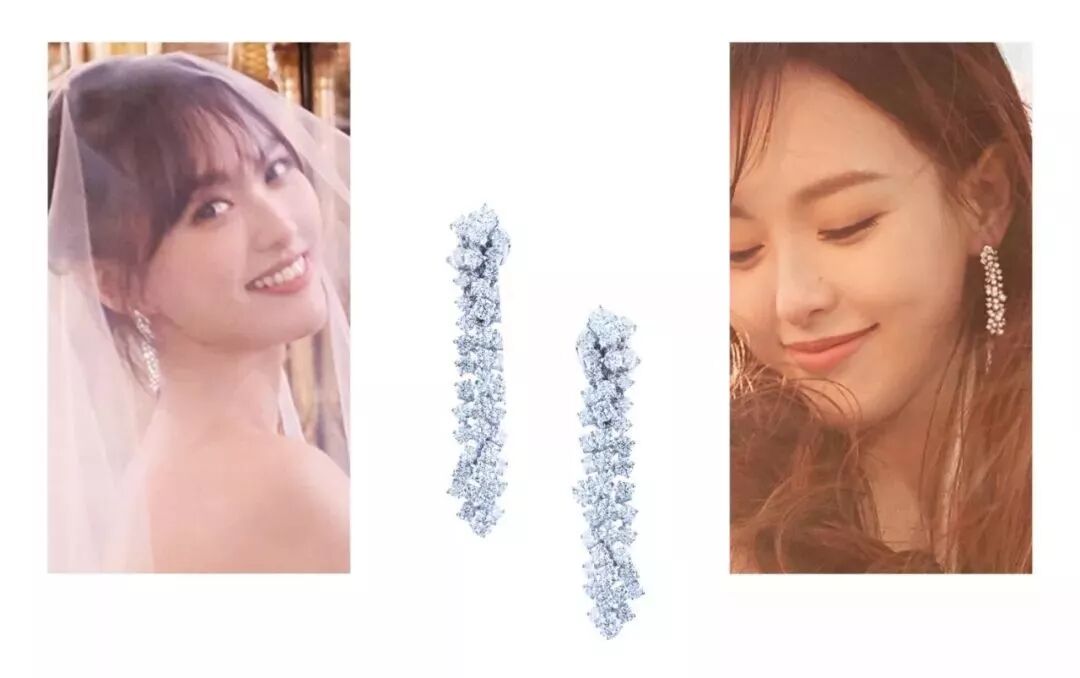 跟婚紗一樣走古典宮廷風。除了鑽石很多,據說正中間的那顆也蠻厲害的,底部是愛心的形狀,寓意唐嫣和羅晉的愛情銘刻心底,浪漫+用心一百分。