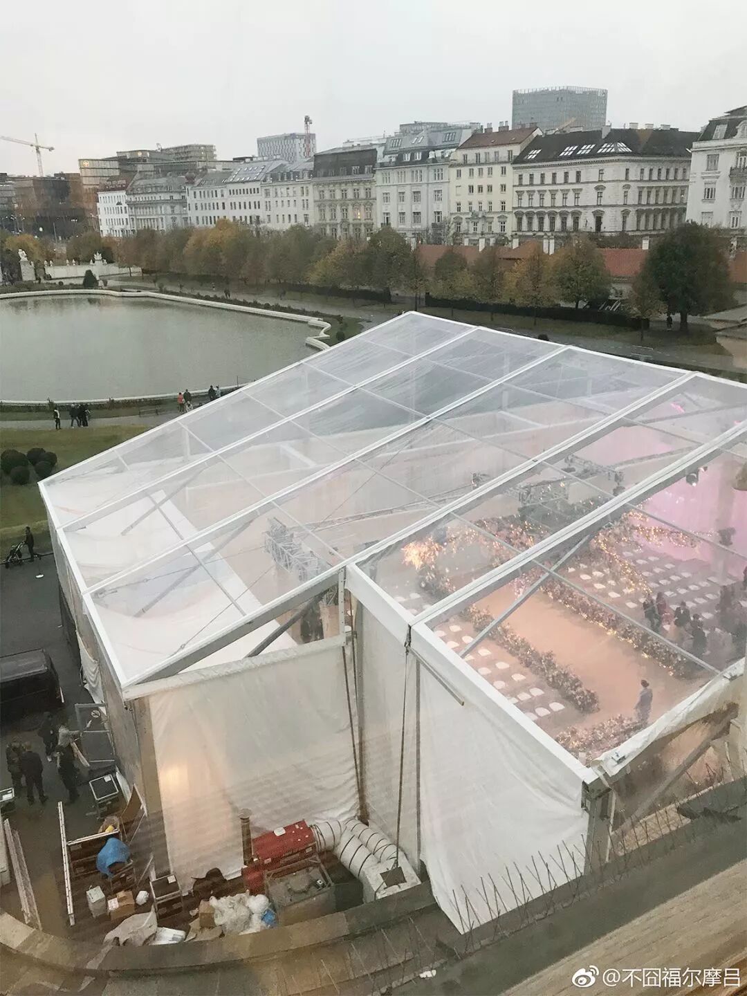 再說說婚禮。唐嫣羅晉是在當地時間10月29號下午5點半,在維也納美景宮(外的玻璃房子里)辦的婚禮儀式。