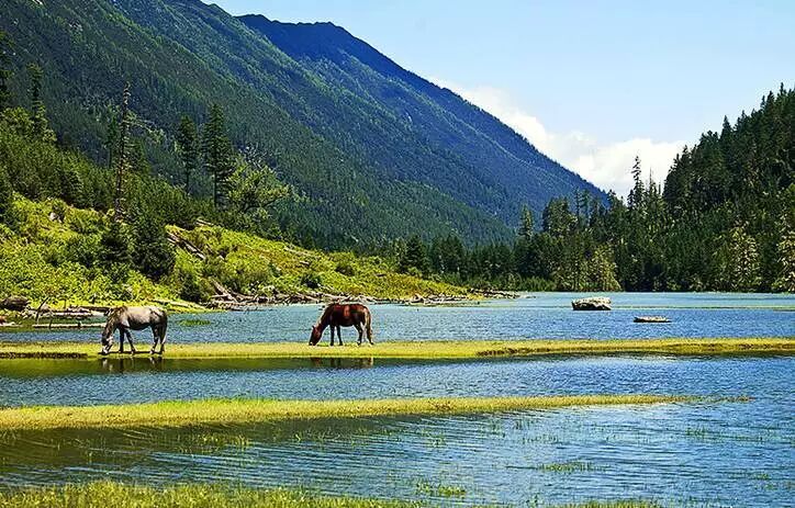 畢棚溝的夏天是有名的避暑聖地,遠處的雪山的積雪在陽光下看得高冷,周圍的森林蒼翠,胡泊也是清澈透明,現在去正是避暑好時節。