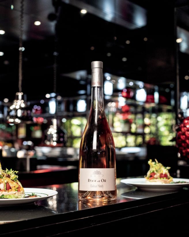 為了搭配她的經典尼斯沙拉,Mélanie選擇了來自美紐緹酒莊的一瓶葡萄酒。「這瓶桃紅非常有活力,帶有強烈的新鮮氣息,還有著柑橘類水果、桃子和白色花朵的香氣,配上這道沙拉是絕對的美味,不會辜負你的味蕾。美紐緹酒莊坐落於Saint-Tropez的海灣,掌管這座酒莊的Matton-Farnet家族讚頌普羅旺斯,並熱愛地中海式美食。這家酒莊出產的桃紅葡萄酒優雅而女性化,是Atelier Étoile餐廳夏日特別菜單中獨具特色的一款葡萄酒。」