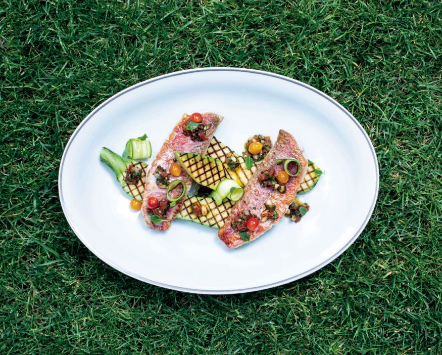 她的推薦 : 羅斯柴爾德家族經典桃紅香檳麗茲酒店特供版配烤炙紅魚片搭配葫瓜與羅勒醬汁