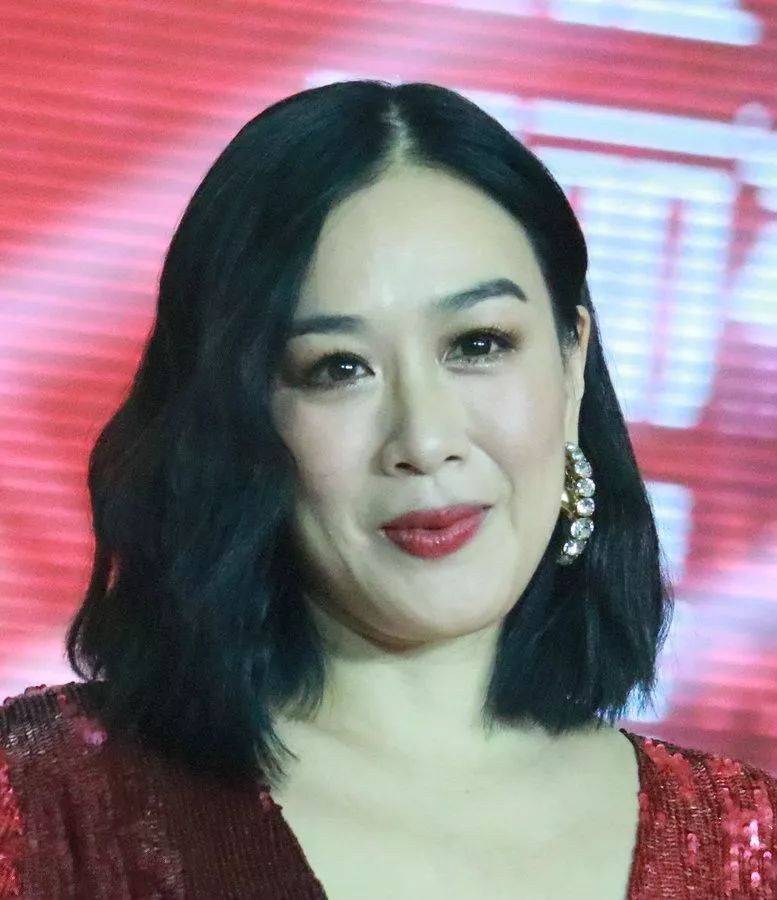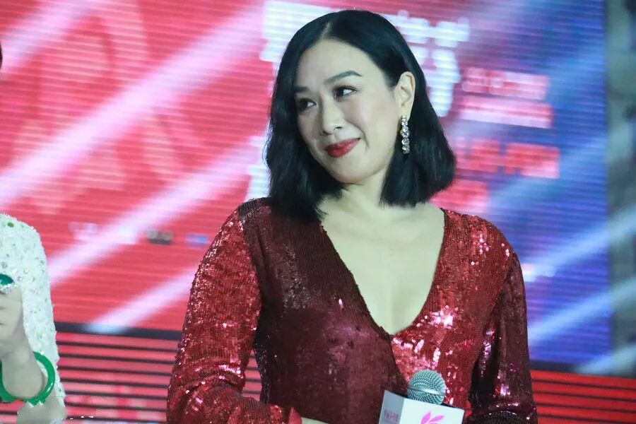 不僅身材發福,臉蛋也看起來有些圓潤,黑色的頭髮,簡約大方,搭配一條紅色裙子,讓自己成為亮點。