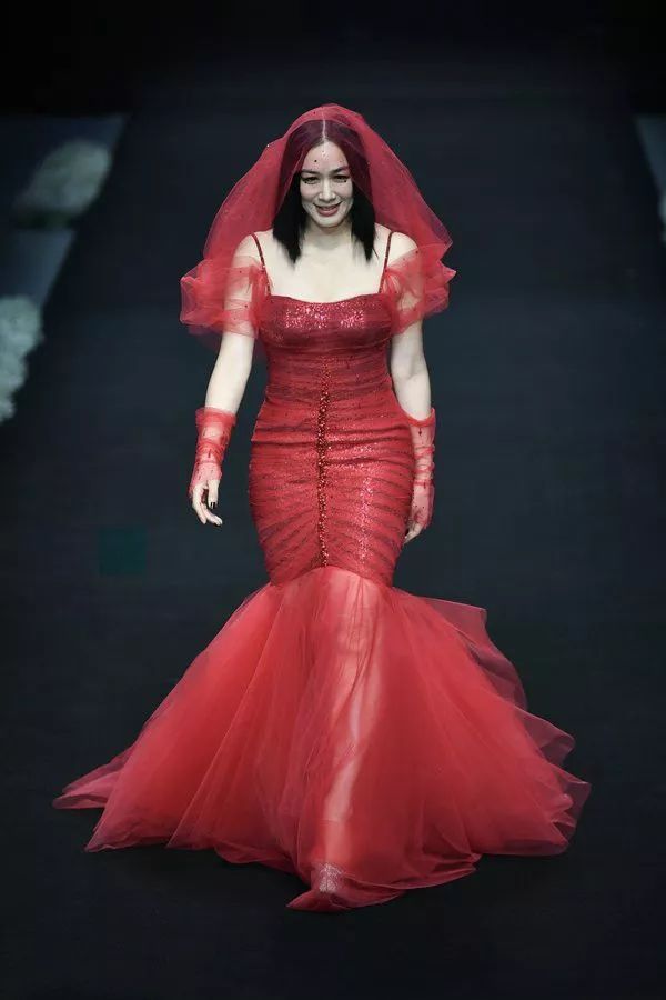 紅色魚尾連衣裙,並不是所有人都敢嘗試的,鐘麗緹身穿一條薄紗連衣裙,看起來仙氣十足,同時凹凸有致的身材,也忒豐滿了。