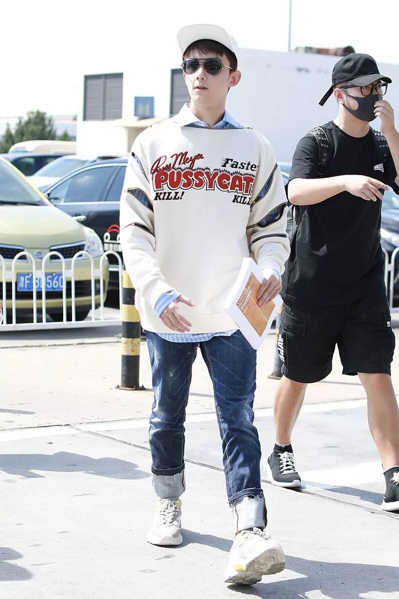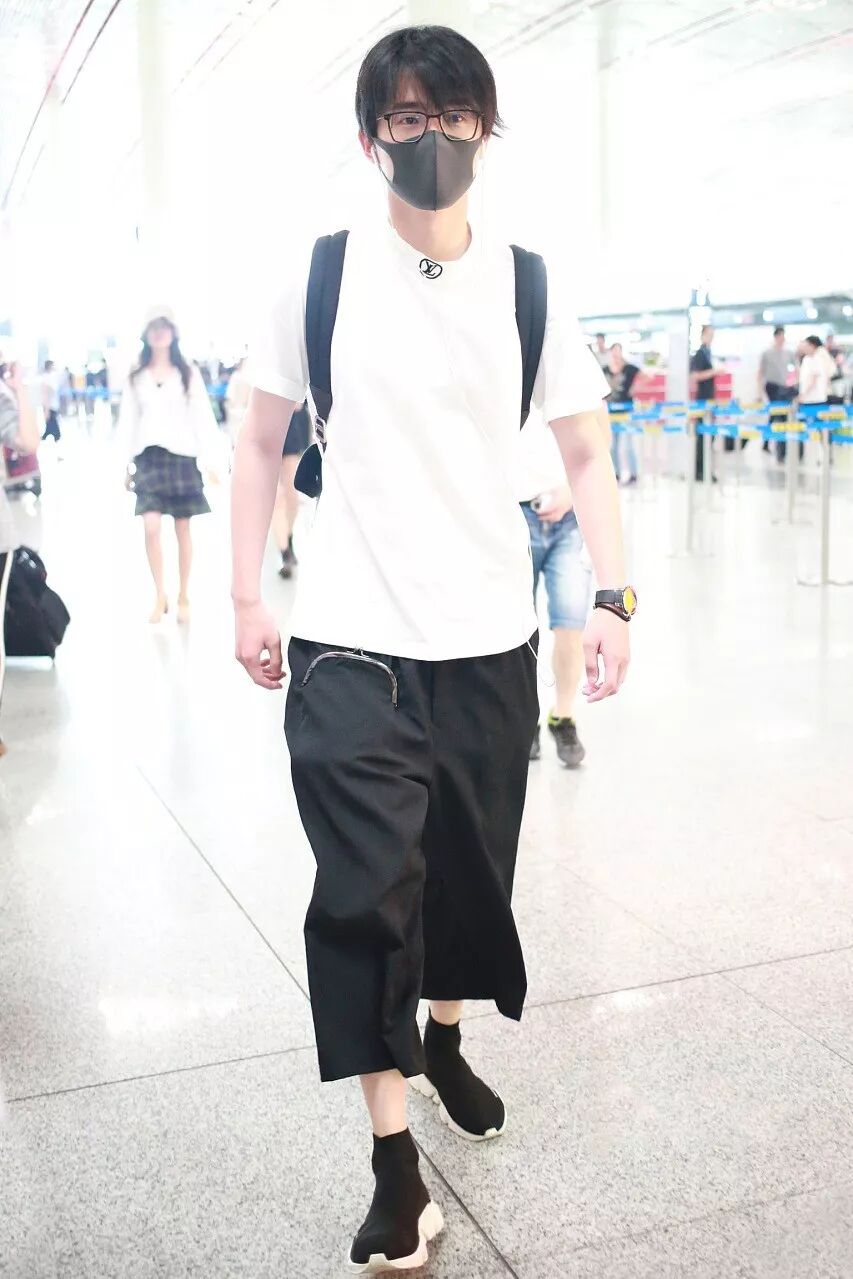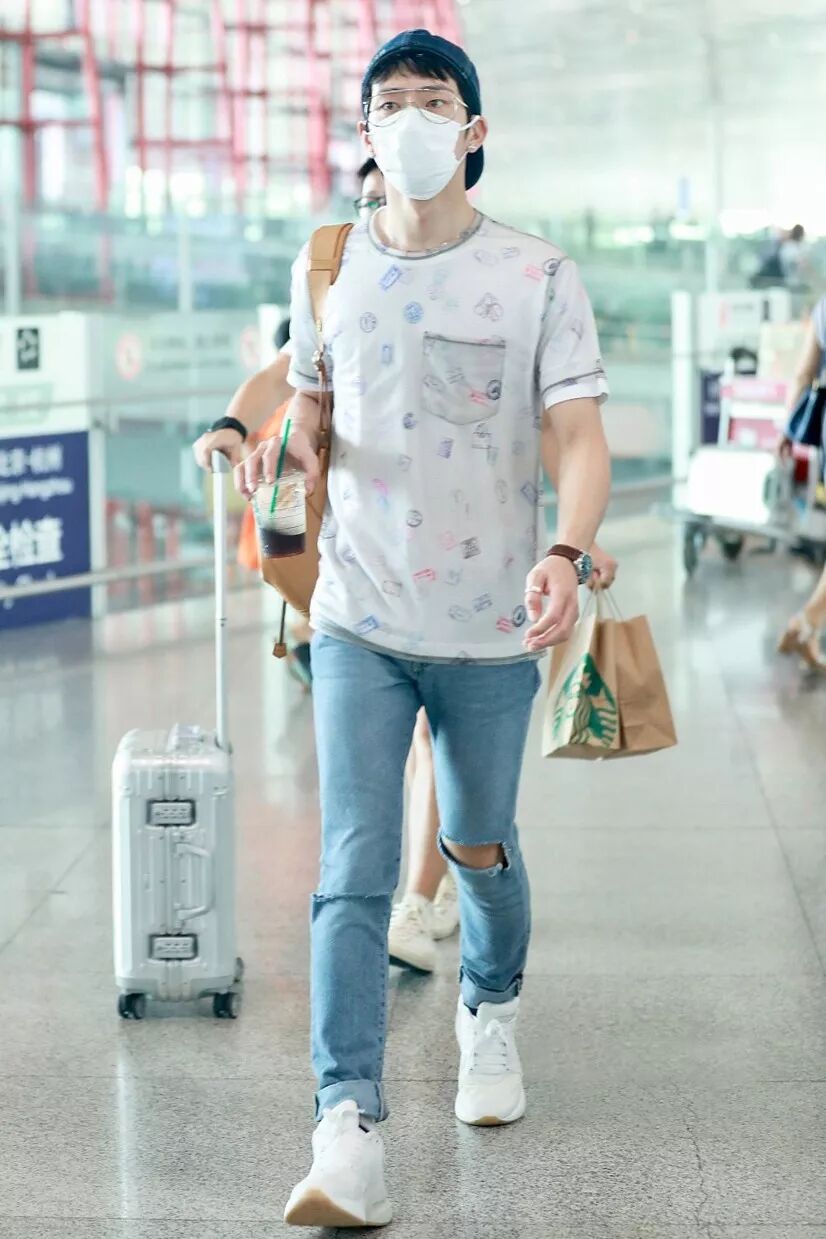 劉昊然的白T+闊腿褲,舒服是舒服,總感覺這身應該把雙肩包換成帆布包,鞋子換雙帆布鞋就有點日系了哈哈~