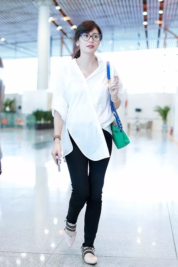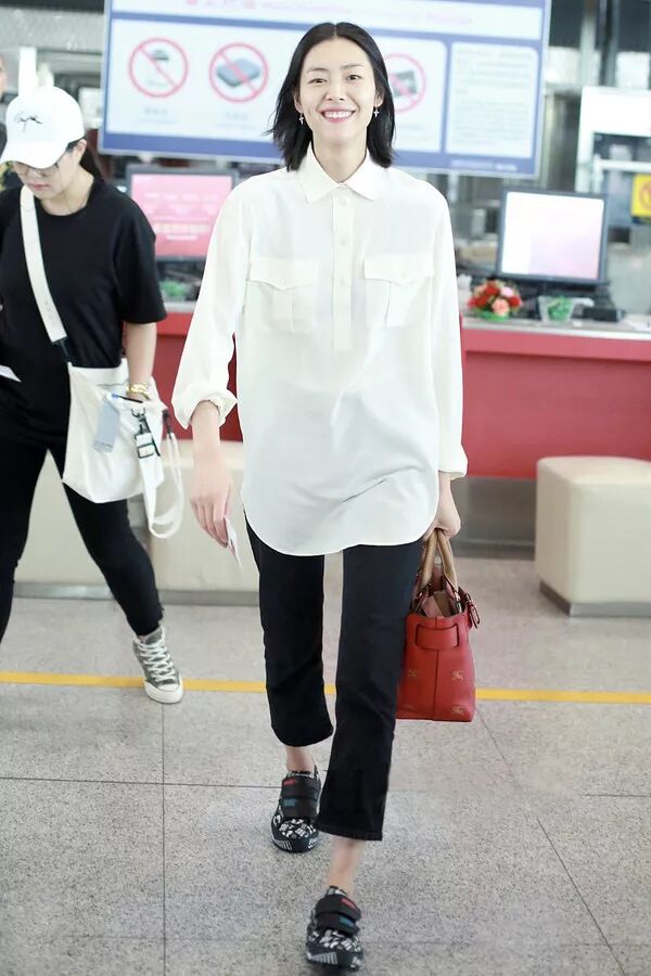 劉雯和賈靜雯的白襯衫+小黑褲,簡約而不簡單。不過如果腿型不是特別好看的,姐建議大家可以多選擇劉雯身上的這類直筒褲,更修飾腿型。